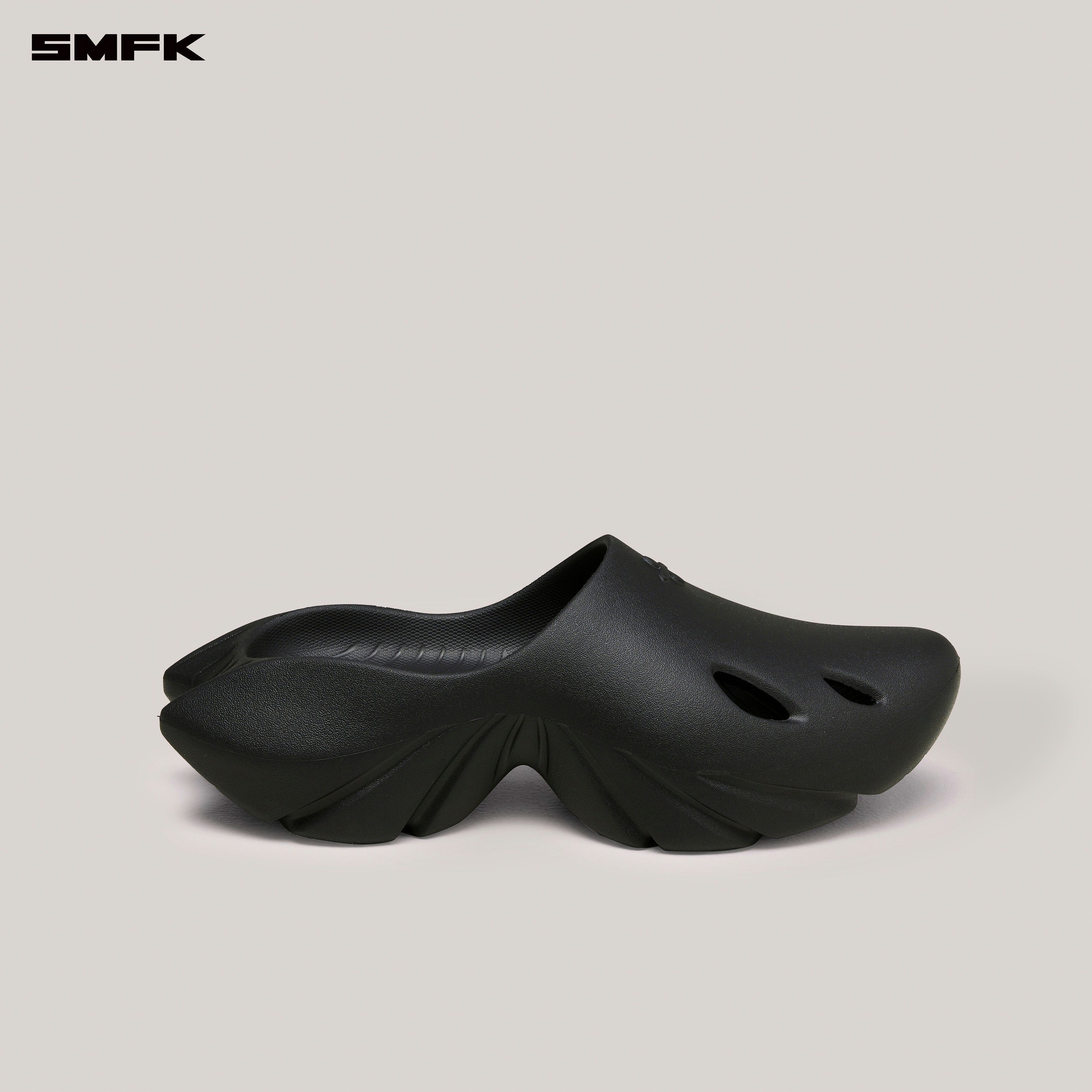 - Design: The Mirage series of integrated sports sandals, fully wrapped one-piece flat shoes designed by SMFK in 2025. As a product type that explores the frontier of SMFK's integrated design concept, the integrated shoes are designed using advanced 3D mold computer numerical control design tools. The laboratory materials are proportioned to produce the latest component particles each year. After more than 10 months, more than 20 actual samples have been tested by machines and field tests for SMFK's special research on integrated products. The design of the Mirage series shoes is derived from the GT sports car, hoping to give users the same "luxury travel" as the GT sports car, comfortable feeling, beautiful appearance, and high-end materials, combined into high-performance endurance shoes and boots like Grand Touring, which will accompany users on various long-distance trips for a long time. The color inspiration is from semi-matte black with fine rock texture.