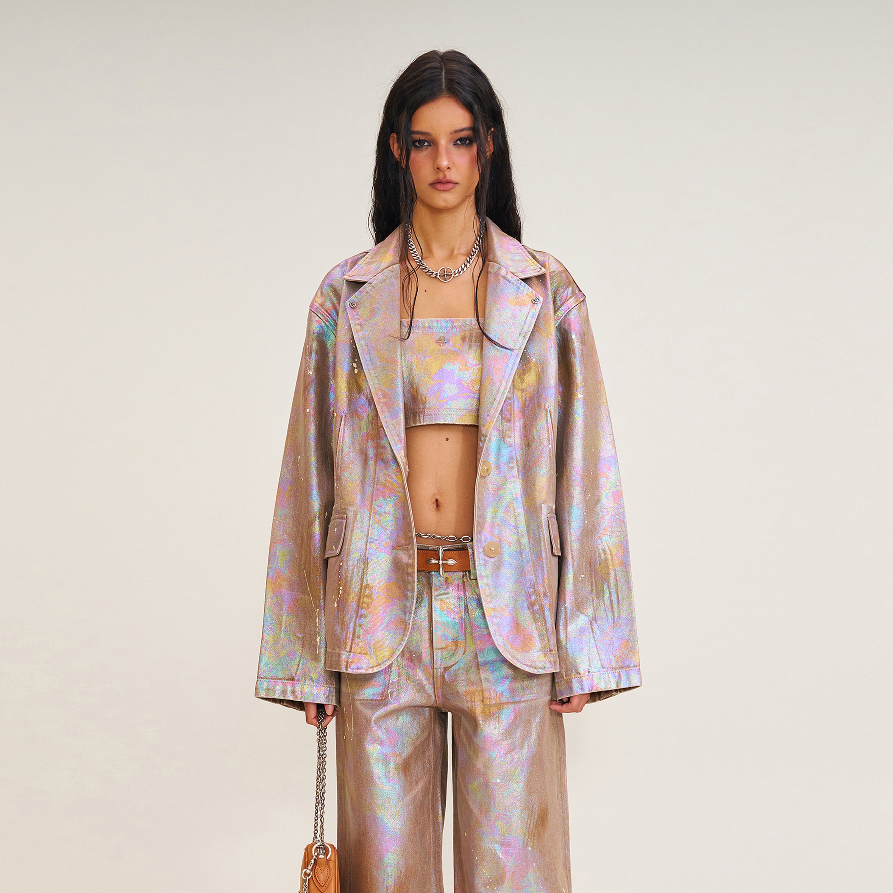 COMPASS MODE ROVE WOOL JACQUARD CAMO LOOSE OVERCOAT ARMY GREEN CAMOUFLAGE