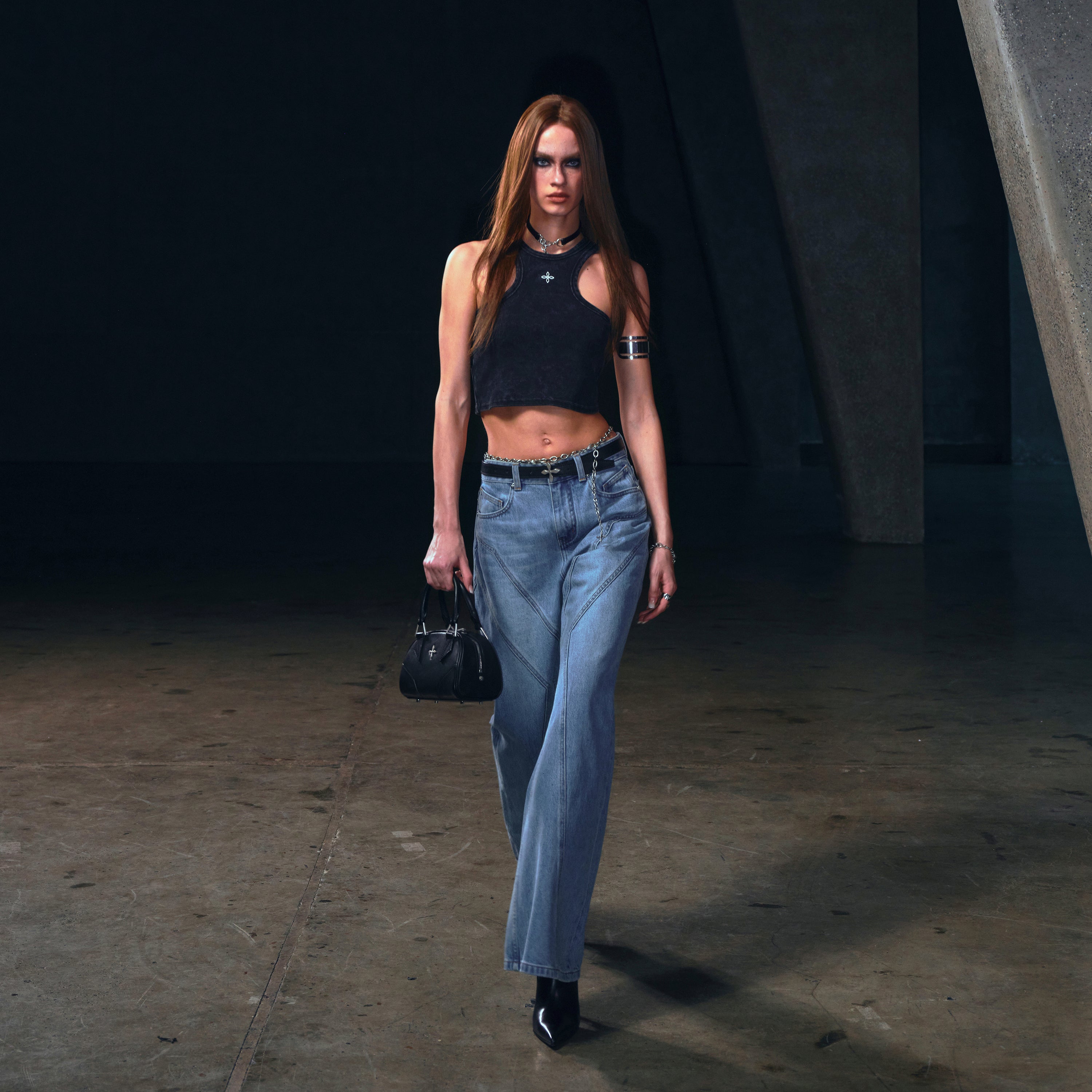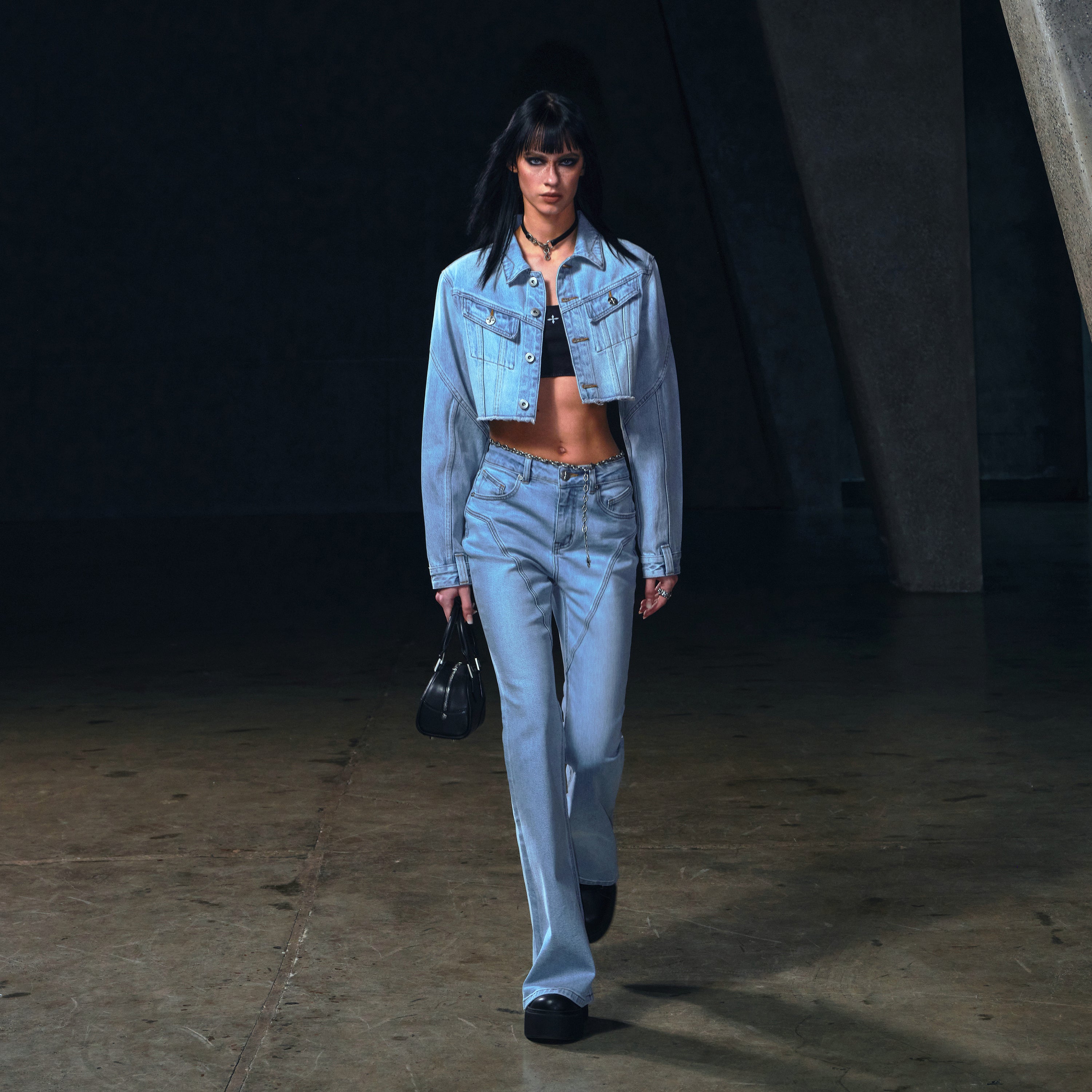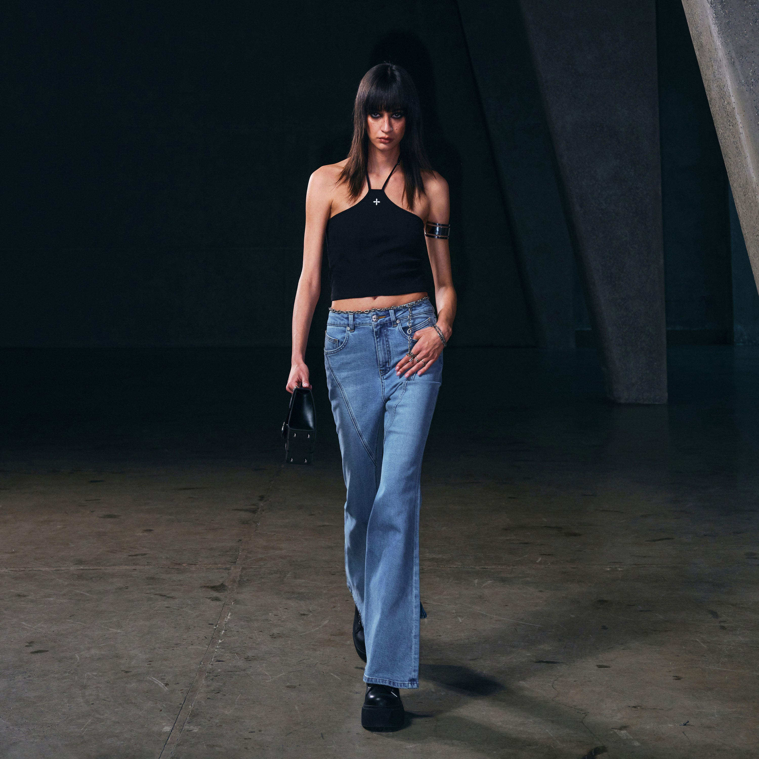 • WILD HURRICANE FLARED DENIM PANTS/E-COTTON SILVER NEBULA