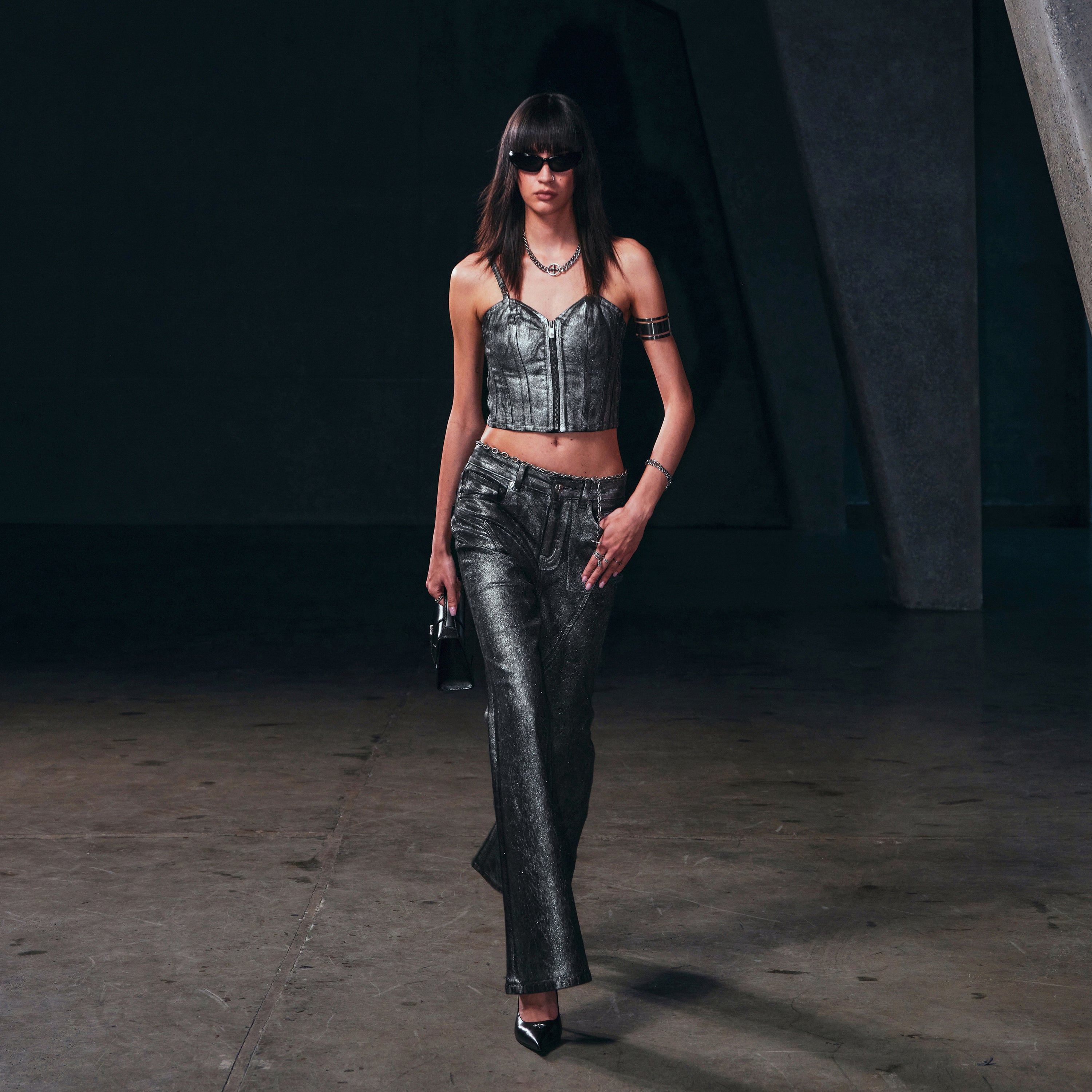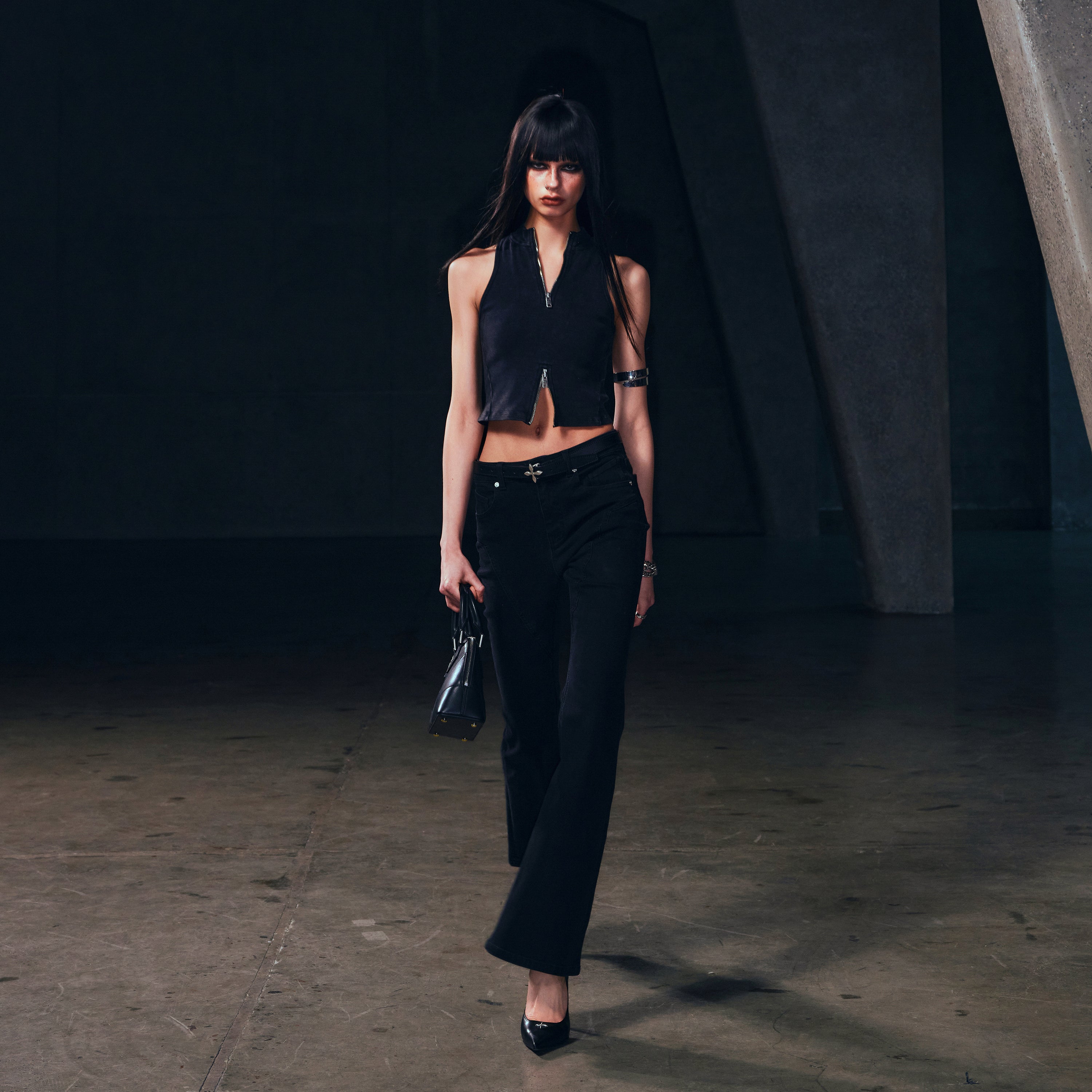• WILD MIRAGE FISHTAIL DENIM PANTS /COTTON WILD BLACK