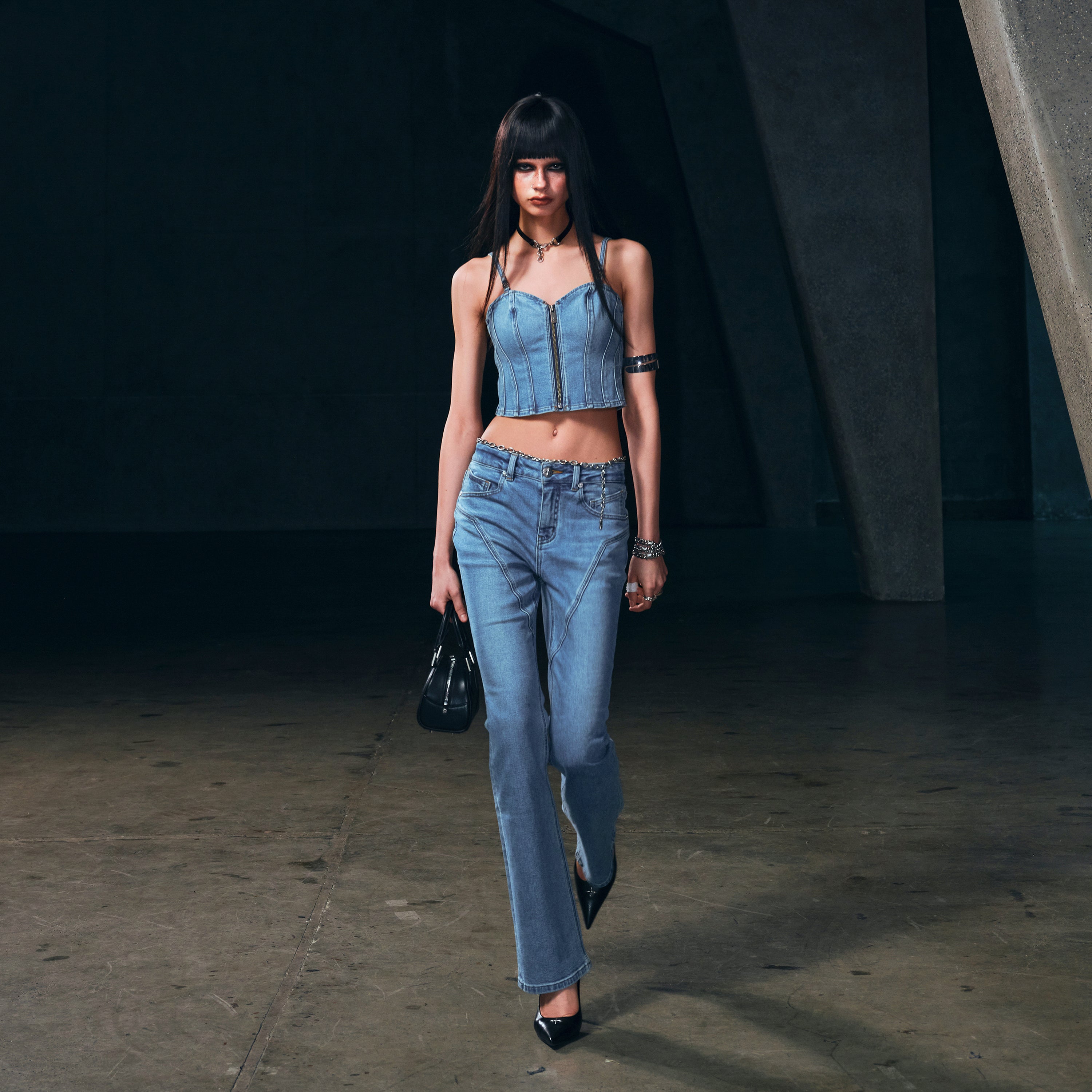 • WILD MIRAGE FISHTAIL DENIM PANTS/COTTON WILD BLUE