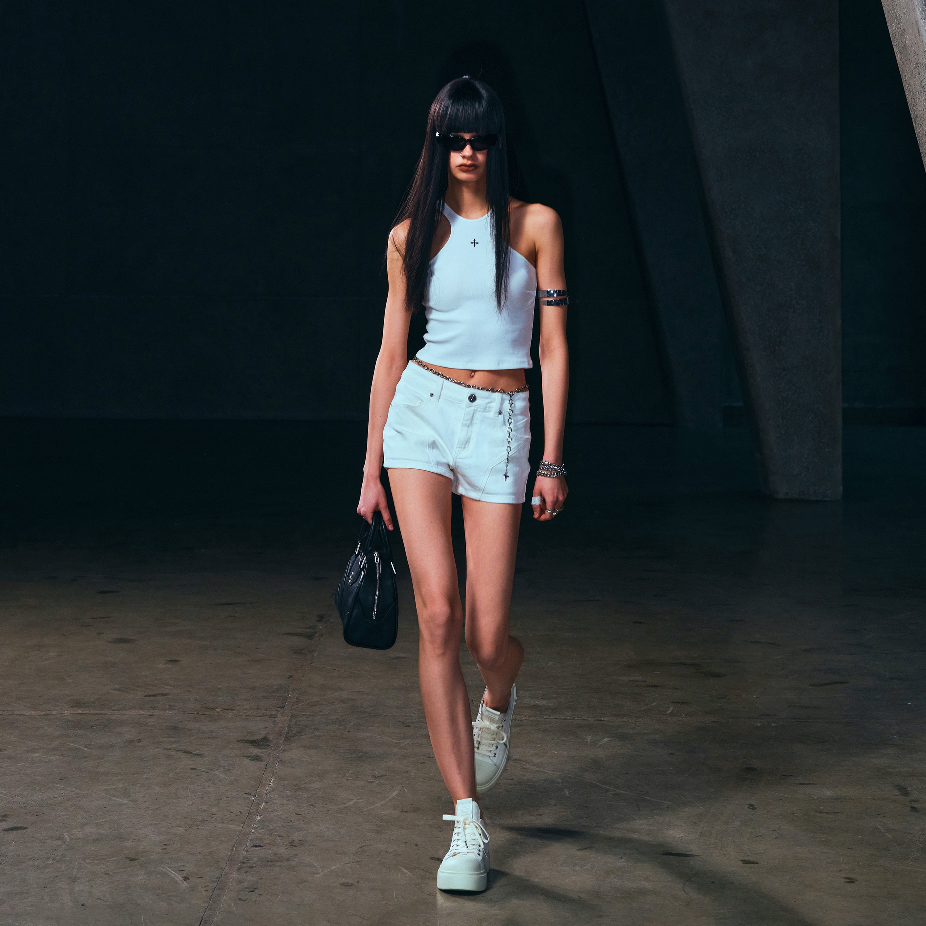 • WILD MIRAGE SKINNY DENIM SHORTS/E-COTTON SNOW MOUNTAIN WHITE
