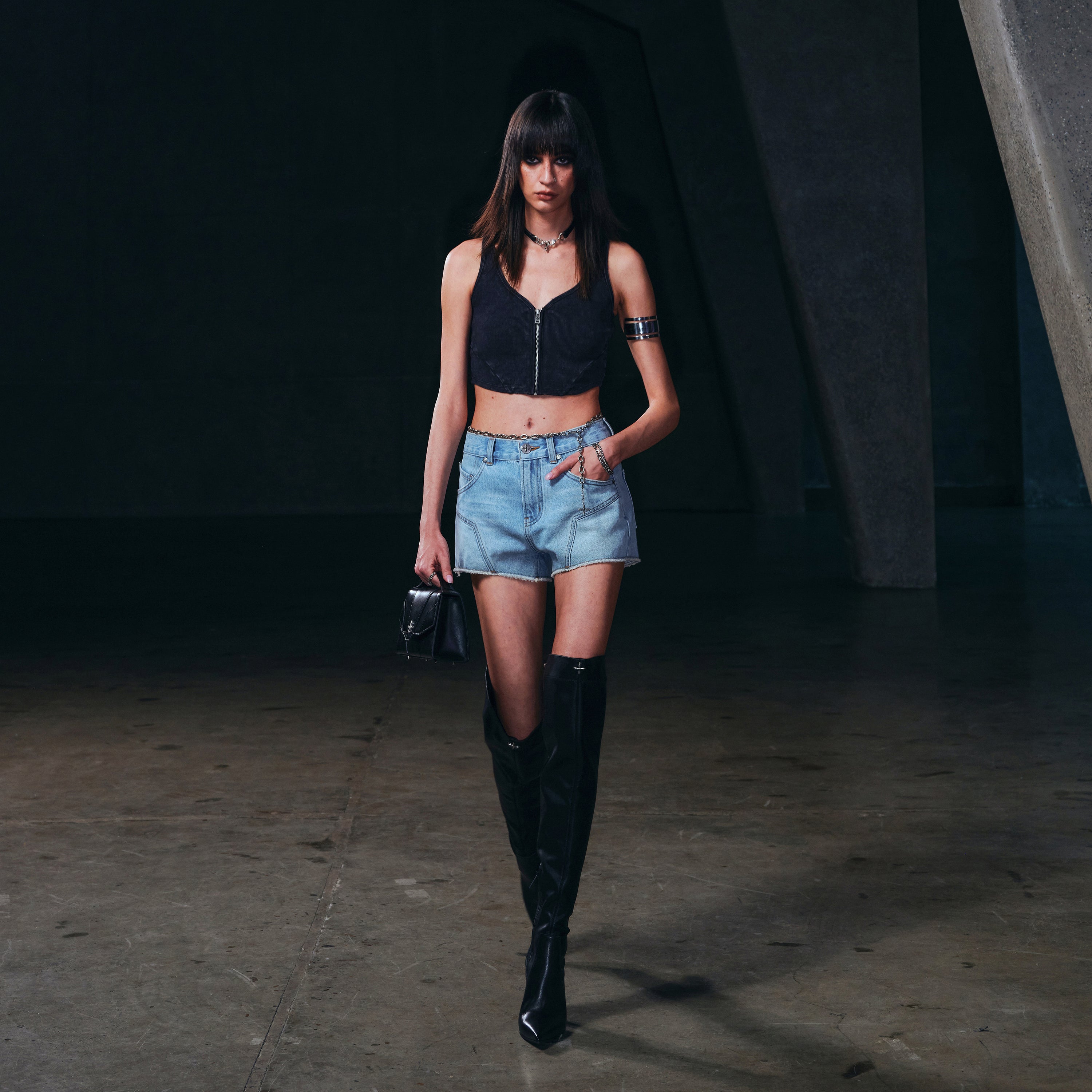 • WILD MIRAGE LOW-WASIT DENIM SHORTS/E-COTTON WILD BLACK