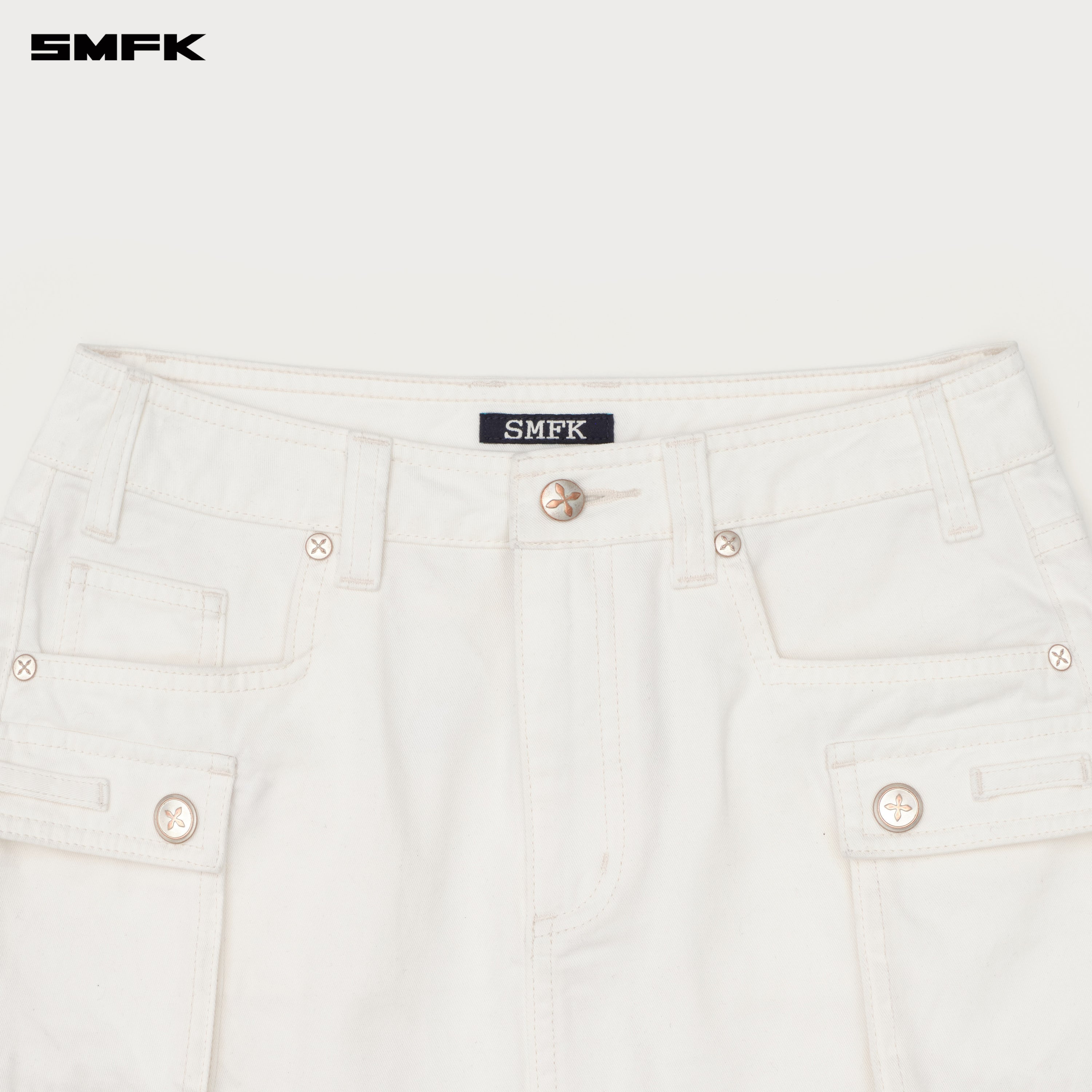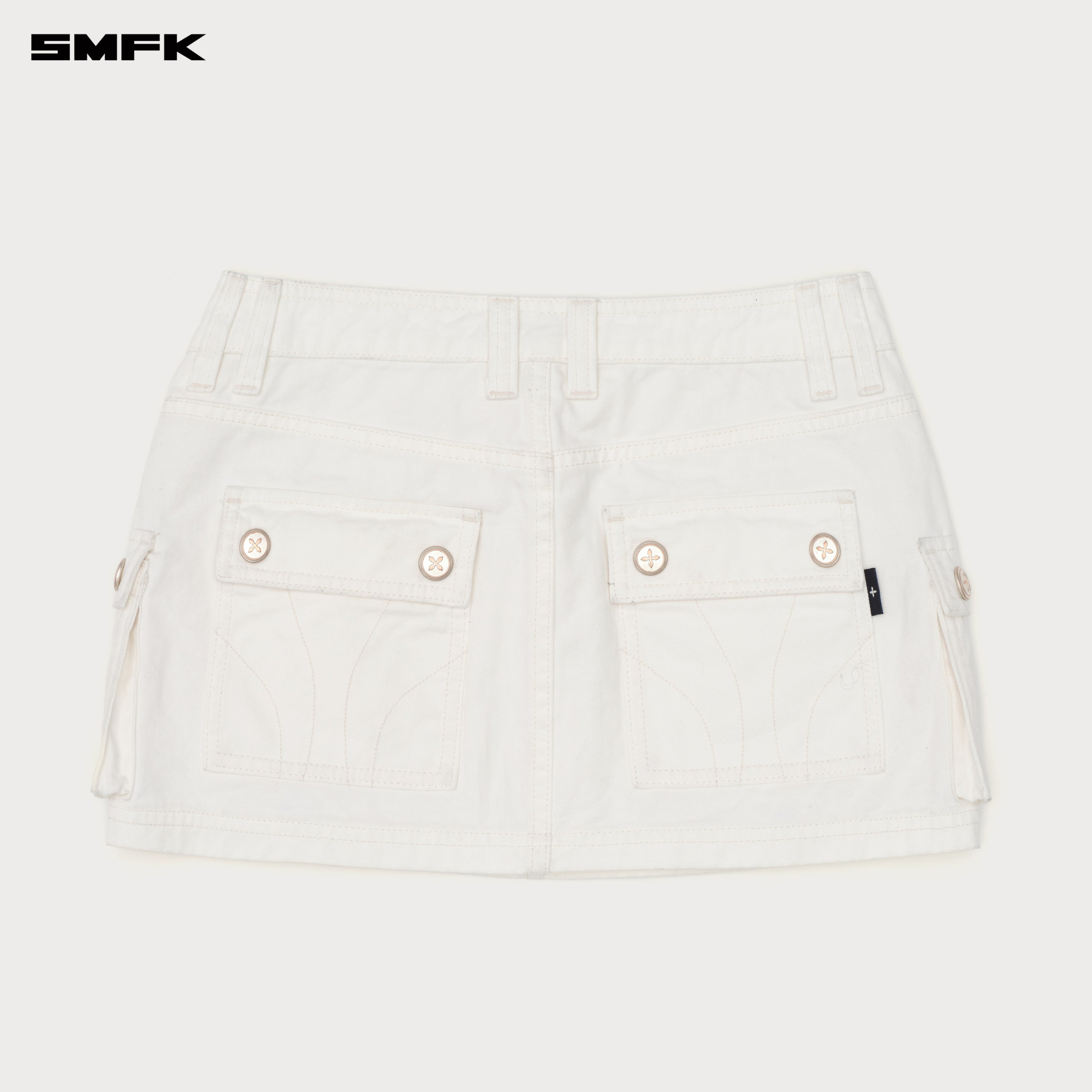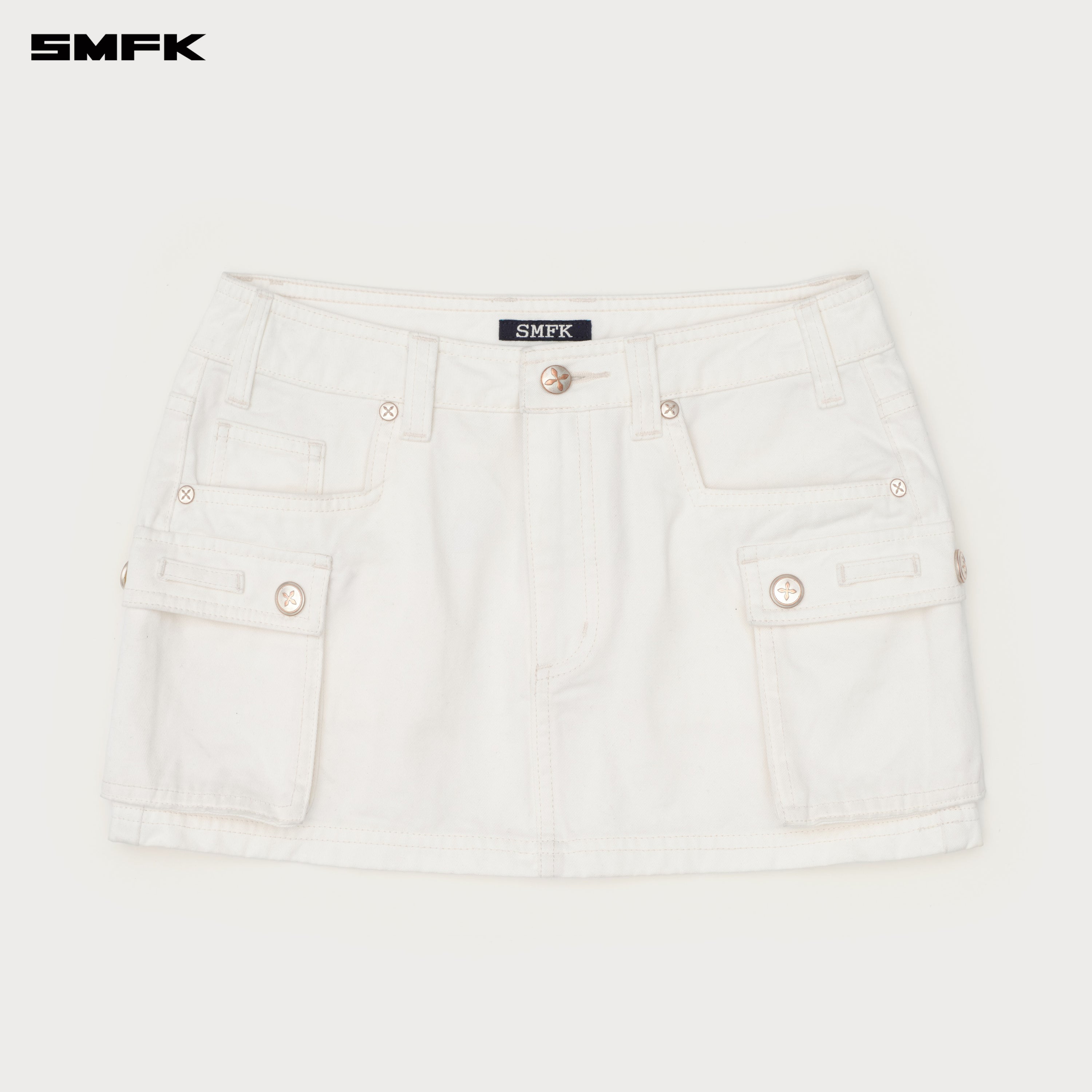 - Design: Cargo skirt designed by SMFK in 2023, low-waist, ultra short, cargo pockets on both sides of the legs. SMFK cut-edge style pocket.