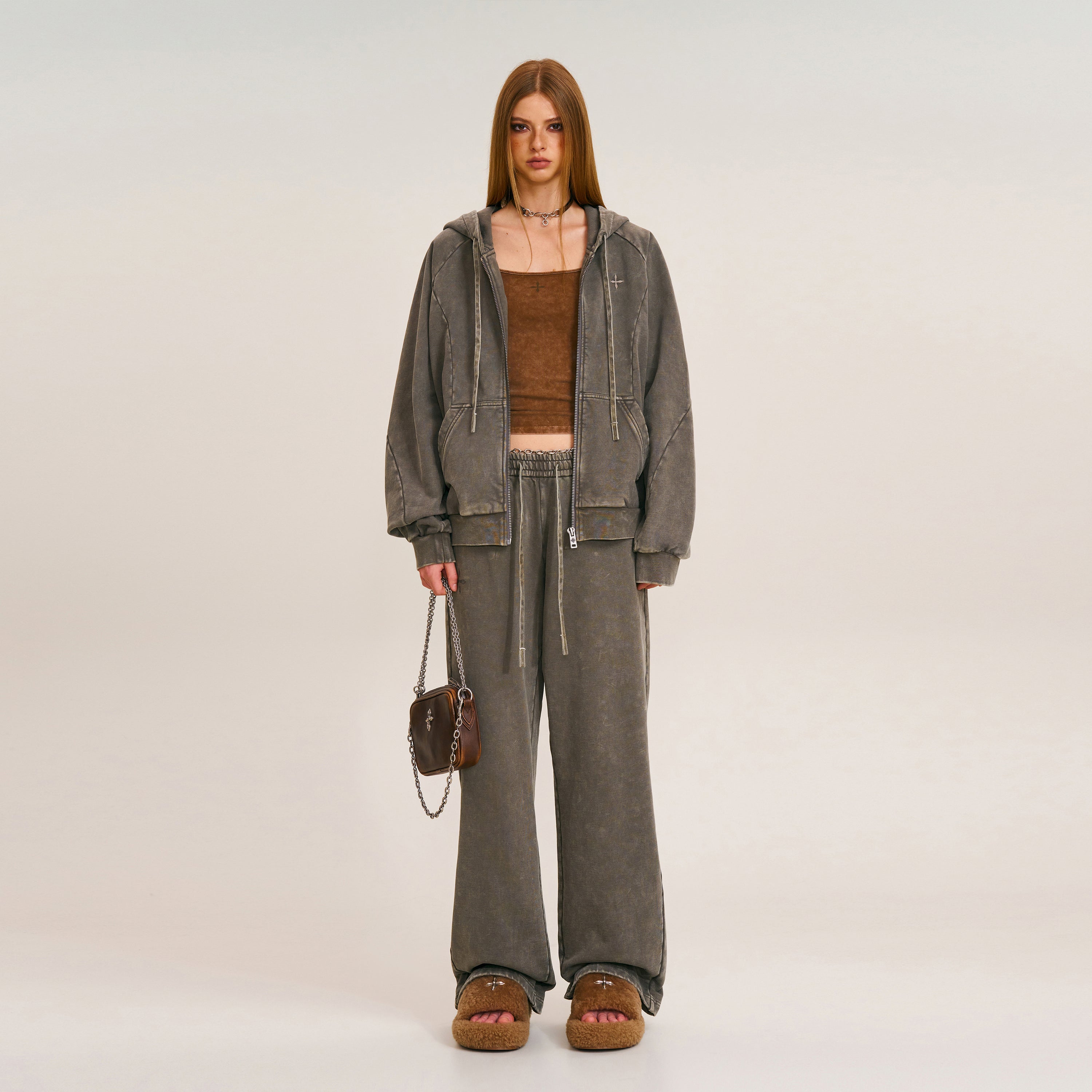 VINTAGE-SAVAGE LOOSE SPORTS PANTS/FADE DYE WILD BROWN