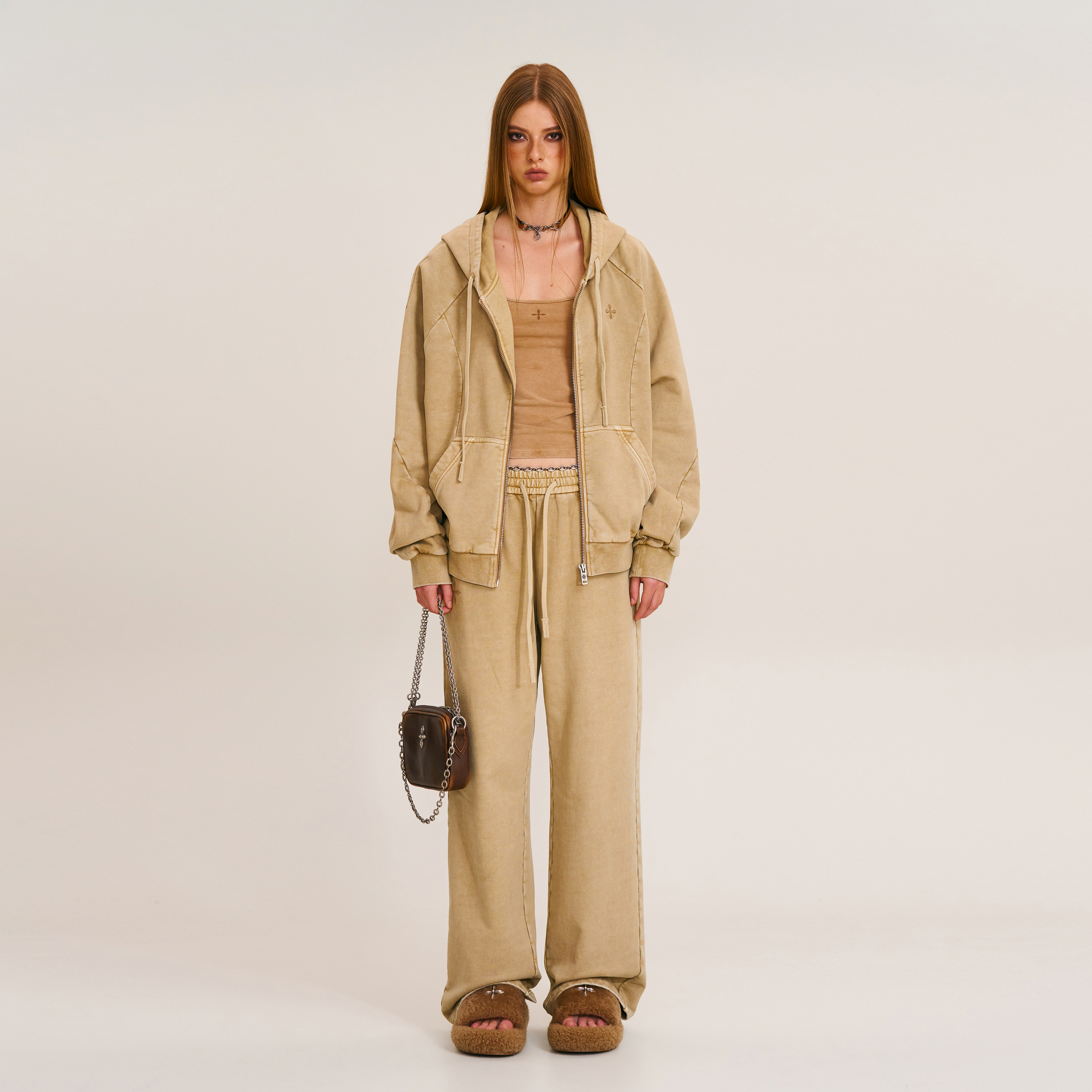 VINTAGE-SAVAGE LOOSE SPORTS PANTS/FADE DYE FADING DESERT