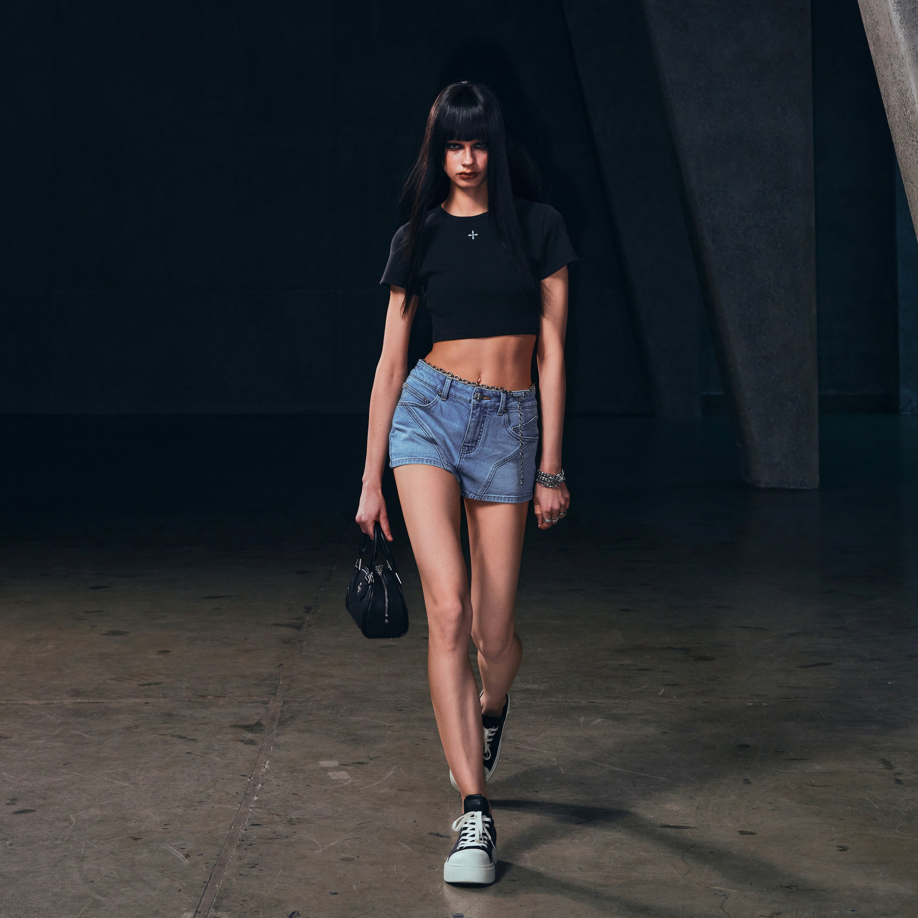 WILD MIRAGE LOW-WASIT DENIM SHORTS/E-COTTON WILD BLACK