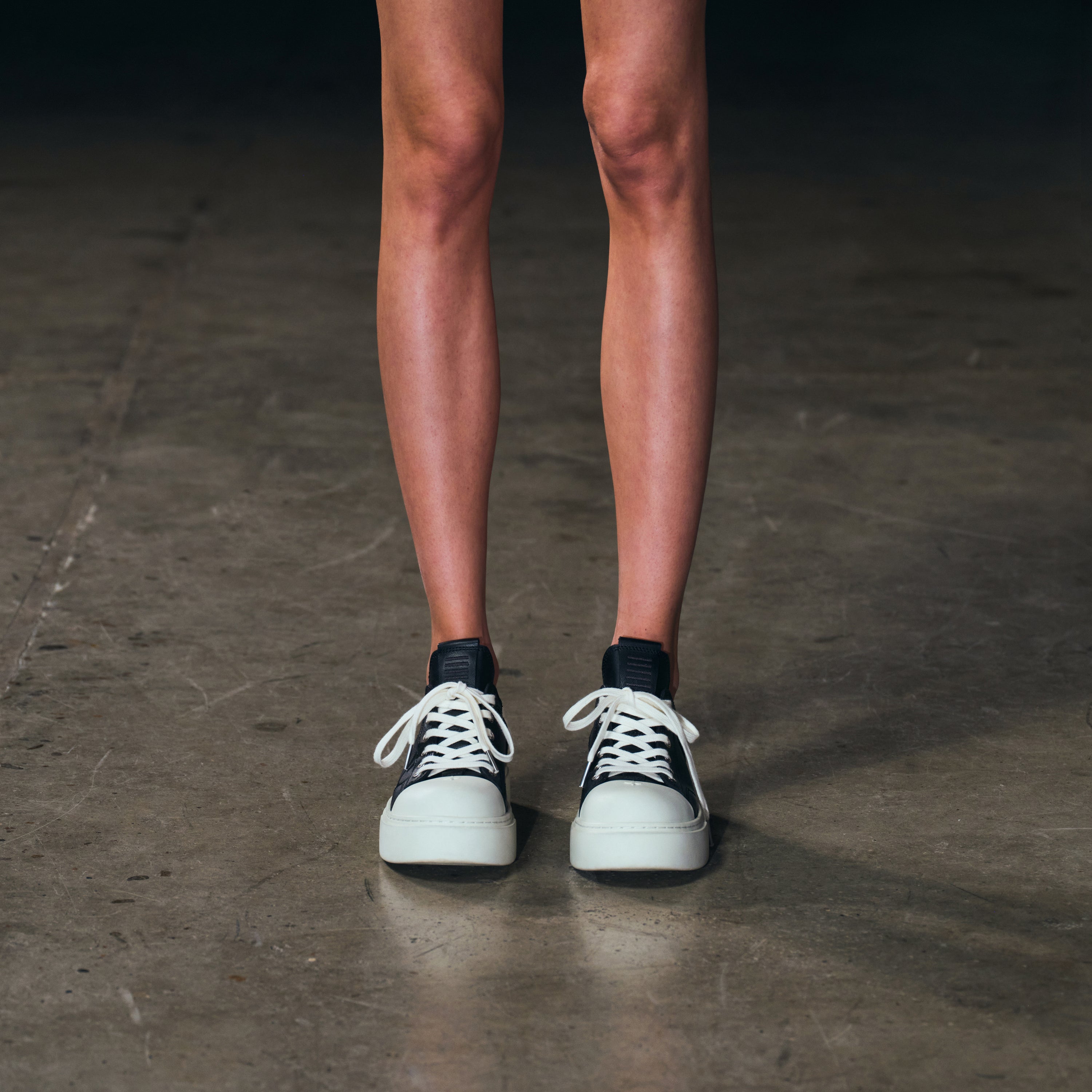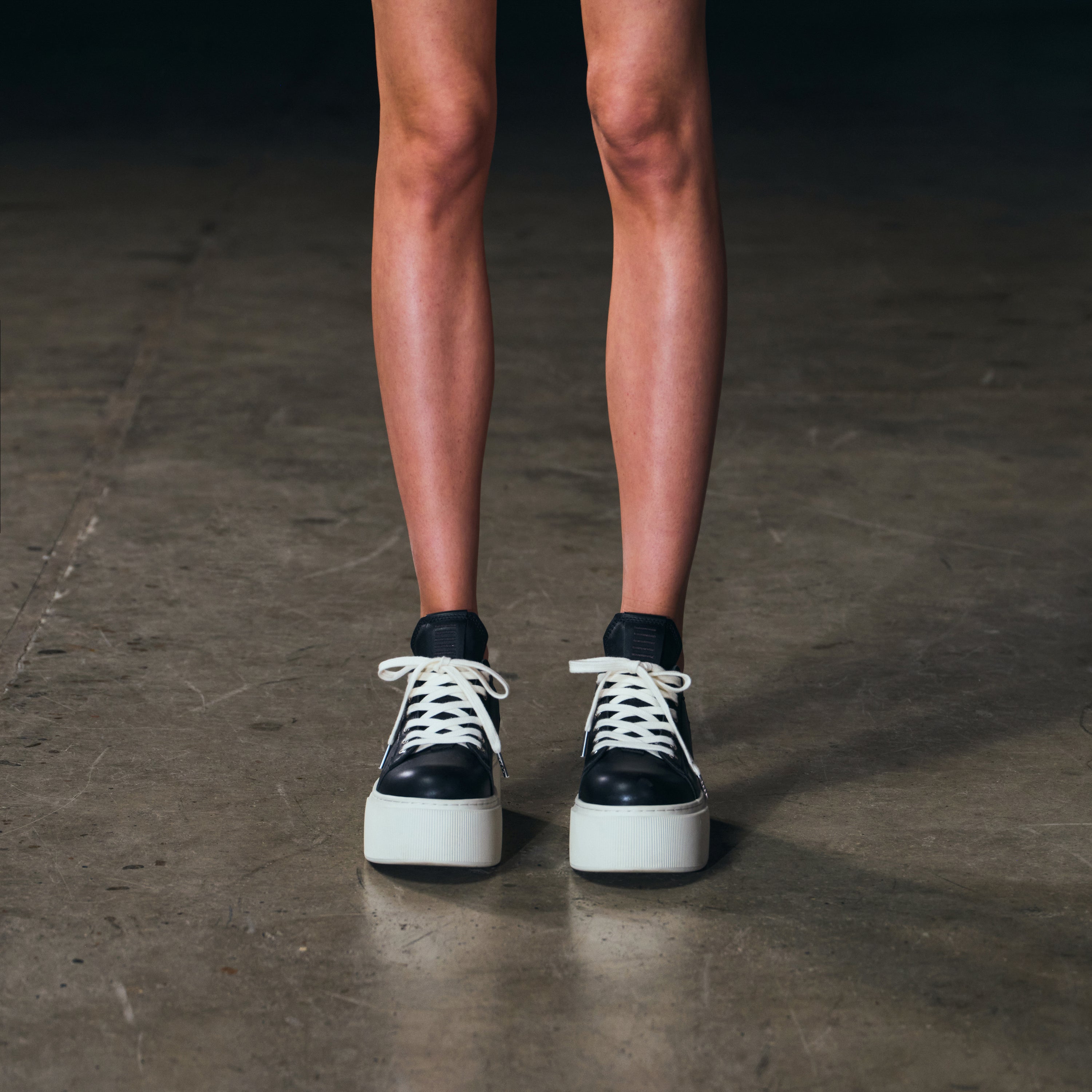 COMPASS MODE THICK LEATHER SNEAKER/COW LEATHER BLACK WHITE