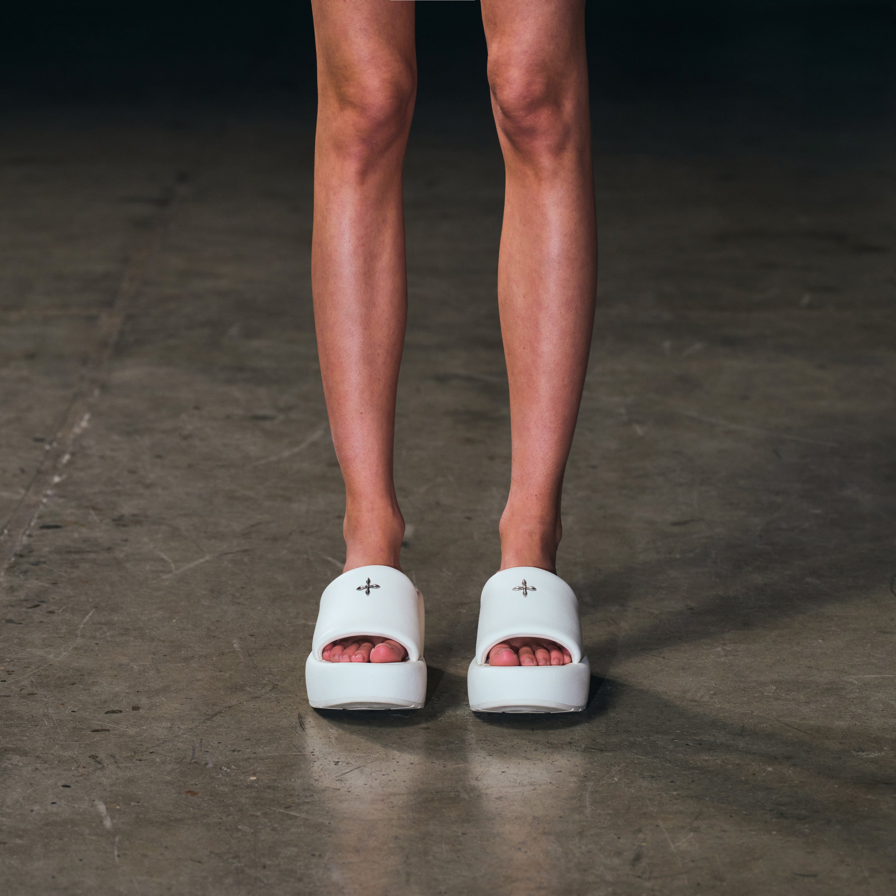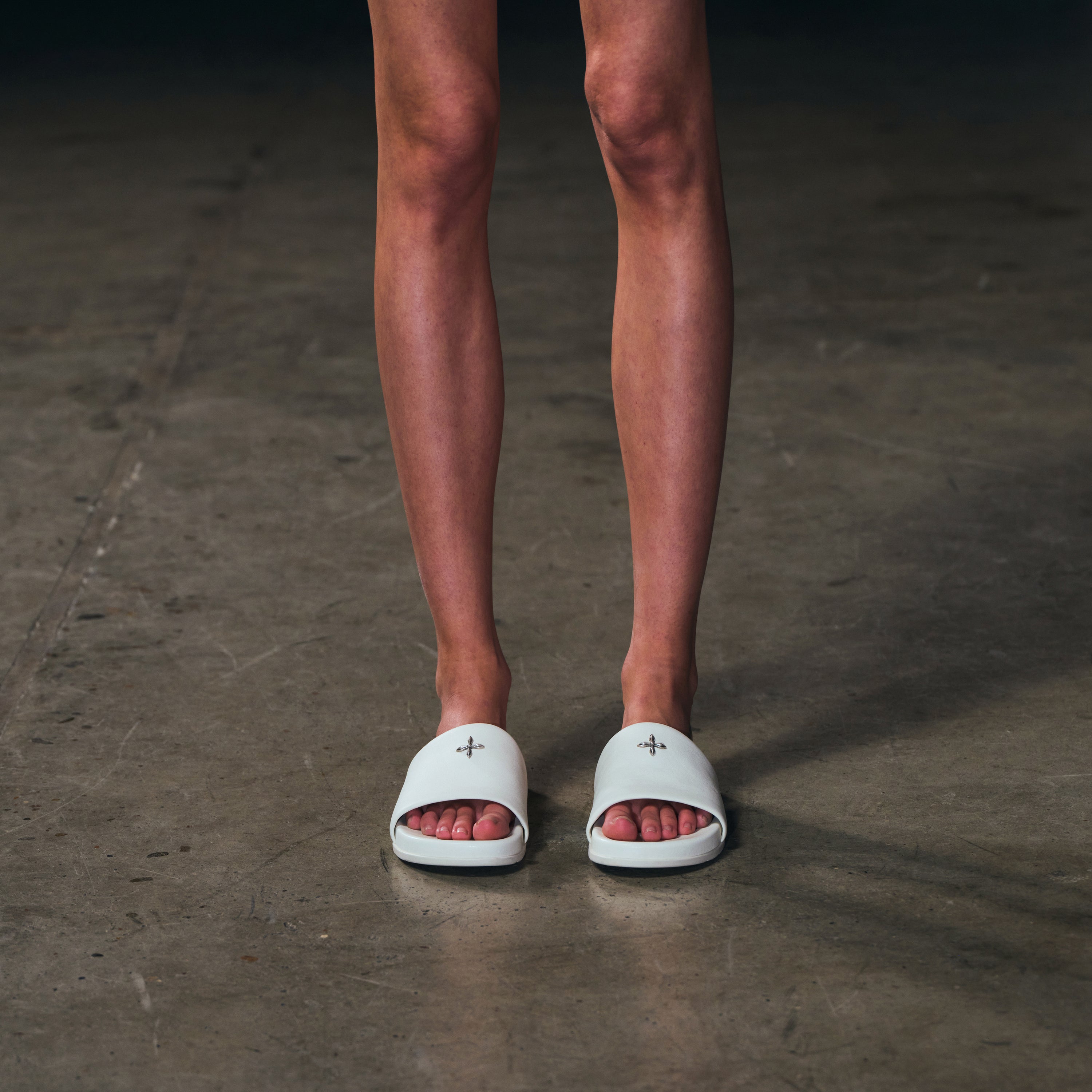 COMPASS MODE-F LEATHER SLIPPER CLOUD WHITE
