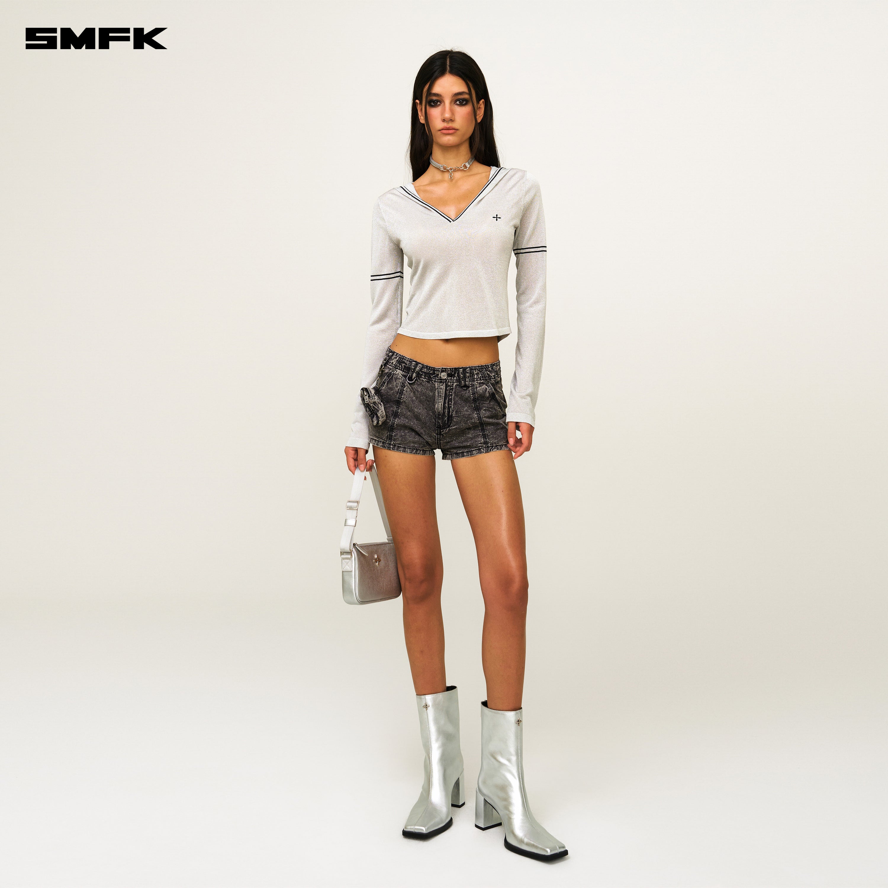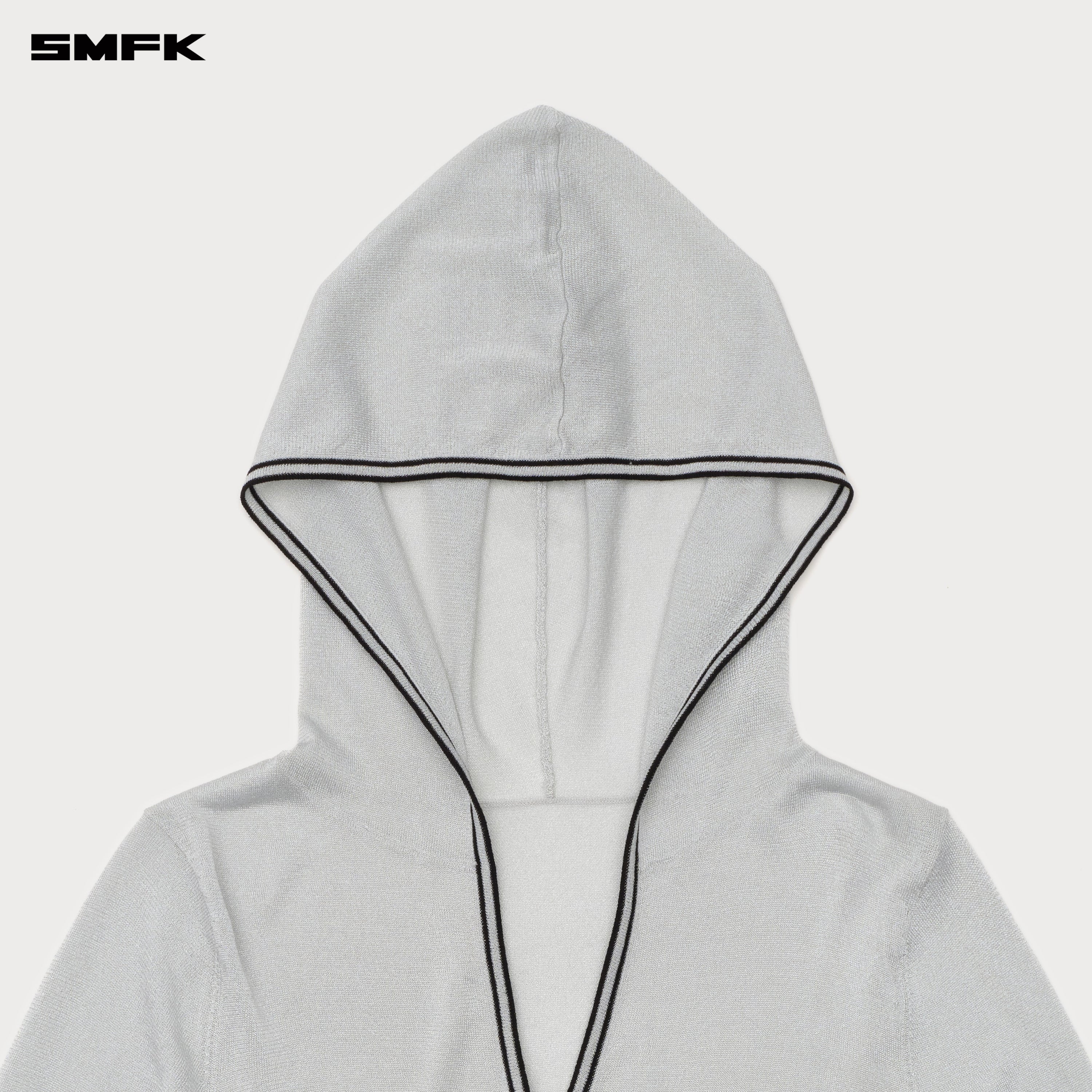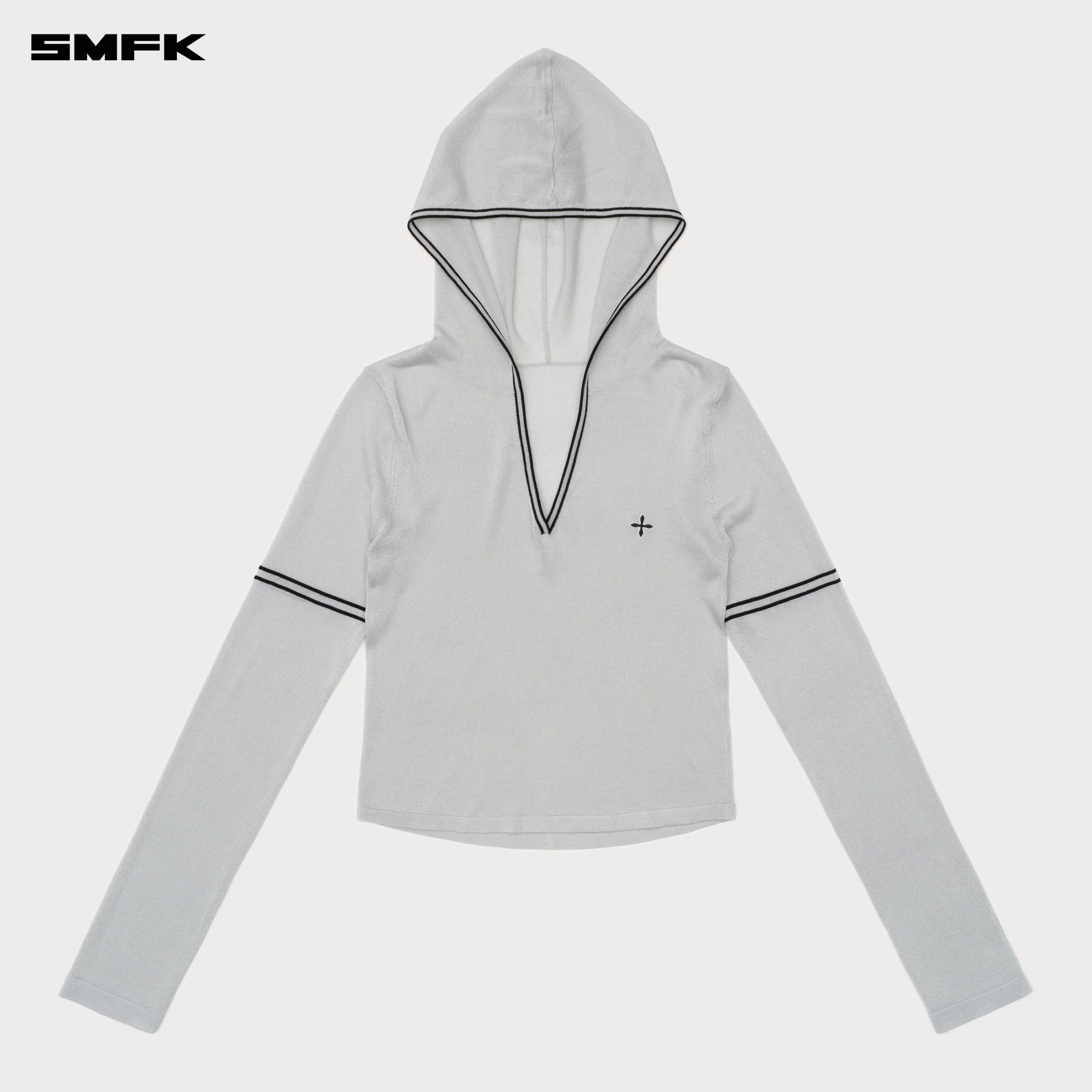 - Design: SMFK's slim knitting hoodie is designed in 2024. Trim Compass is embroidered on the left chest. Cinched waist fit. SMFK extra-long sleeves.