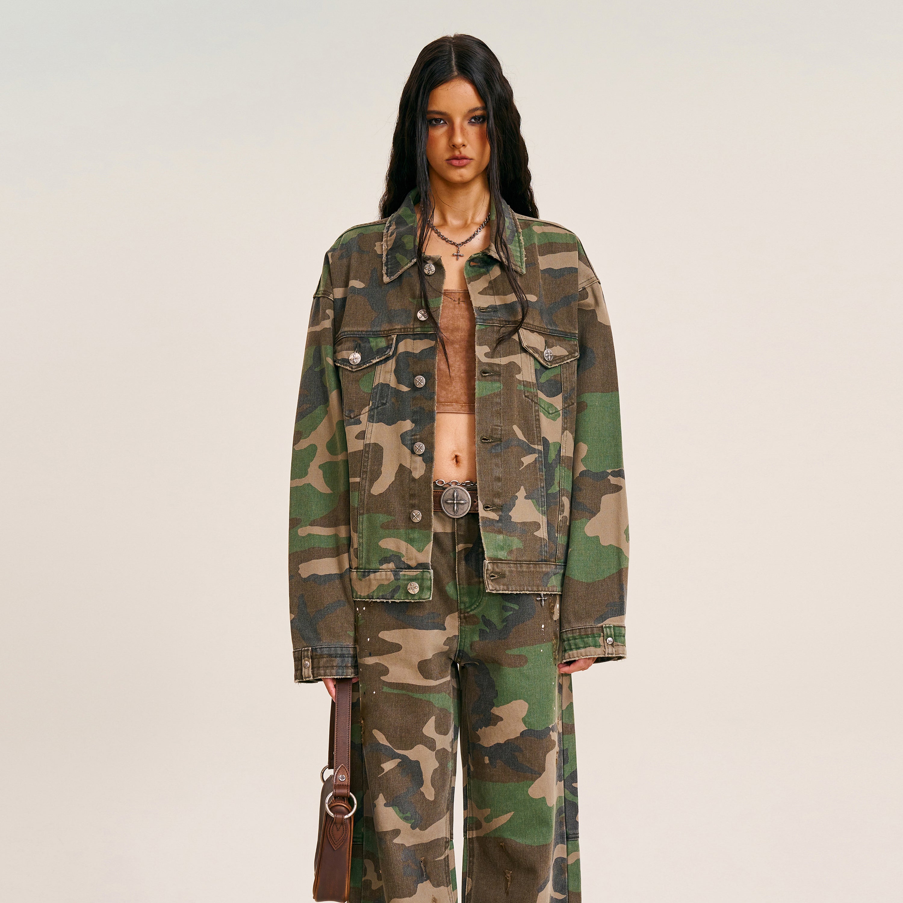 十字架像迷彩デニムジャケット陸迷彩