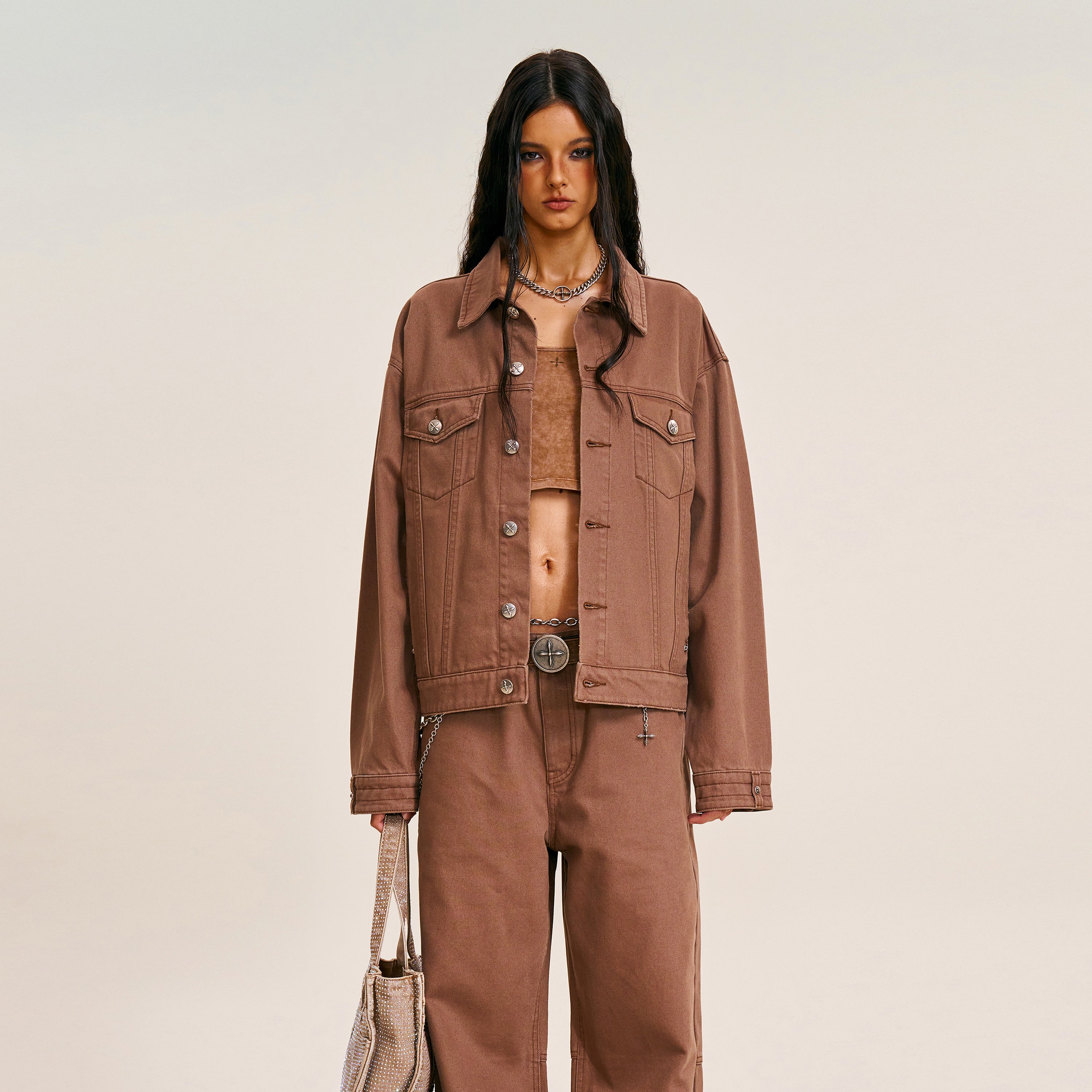 クロススタチューデニムジャケット マスタングブラウン