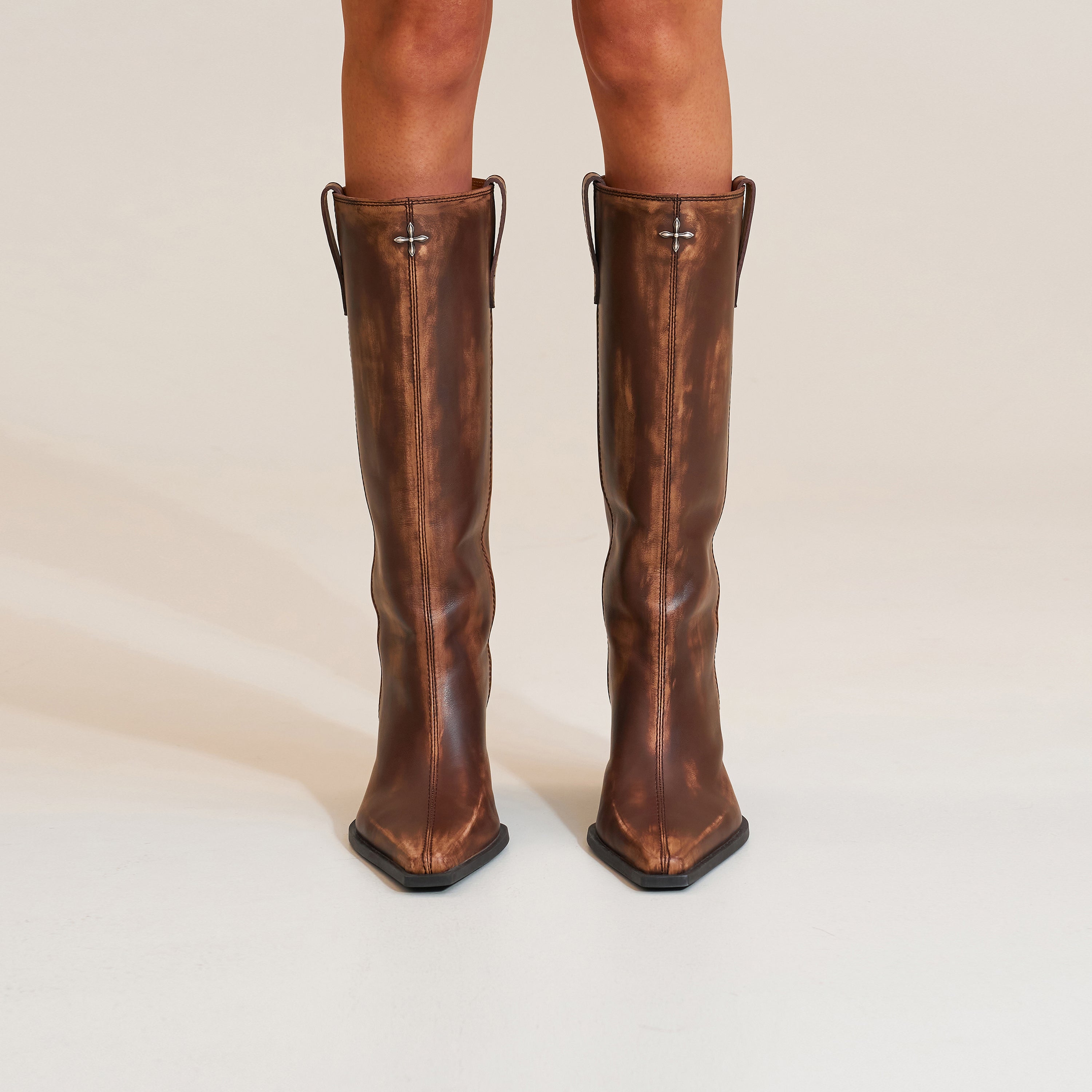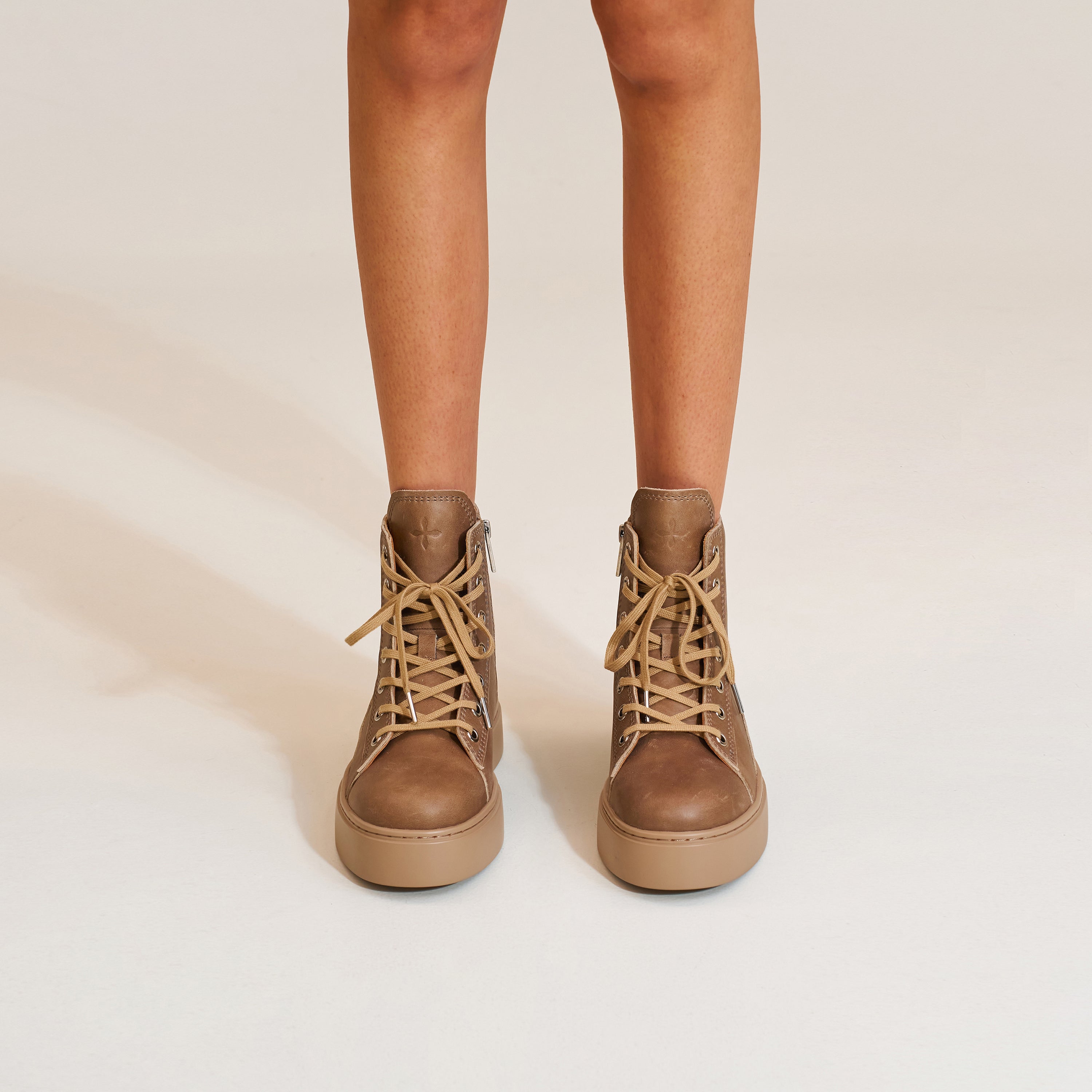 チャージレザーハイカットスニーカー マスタングブラウン