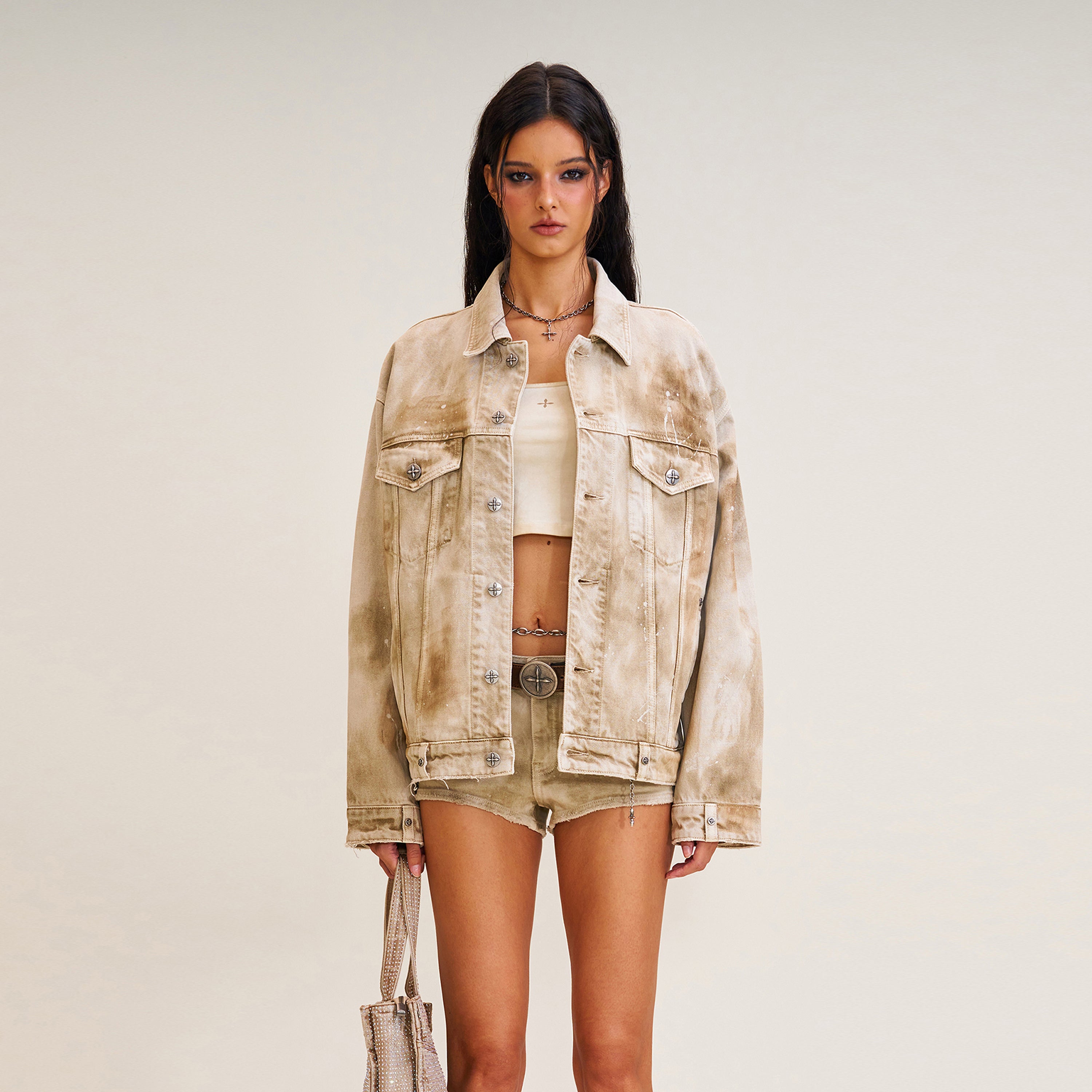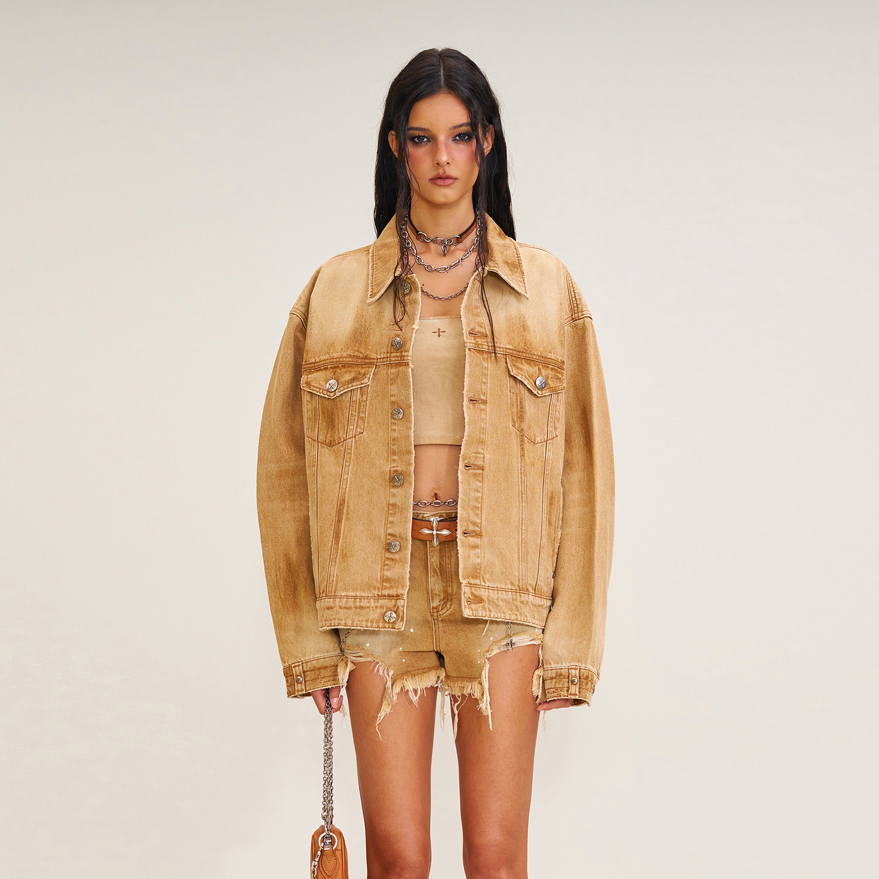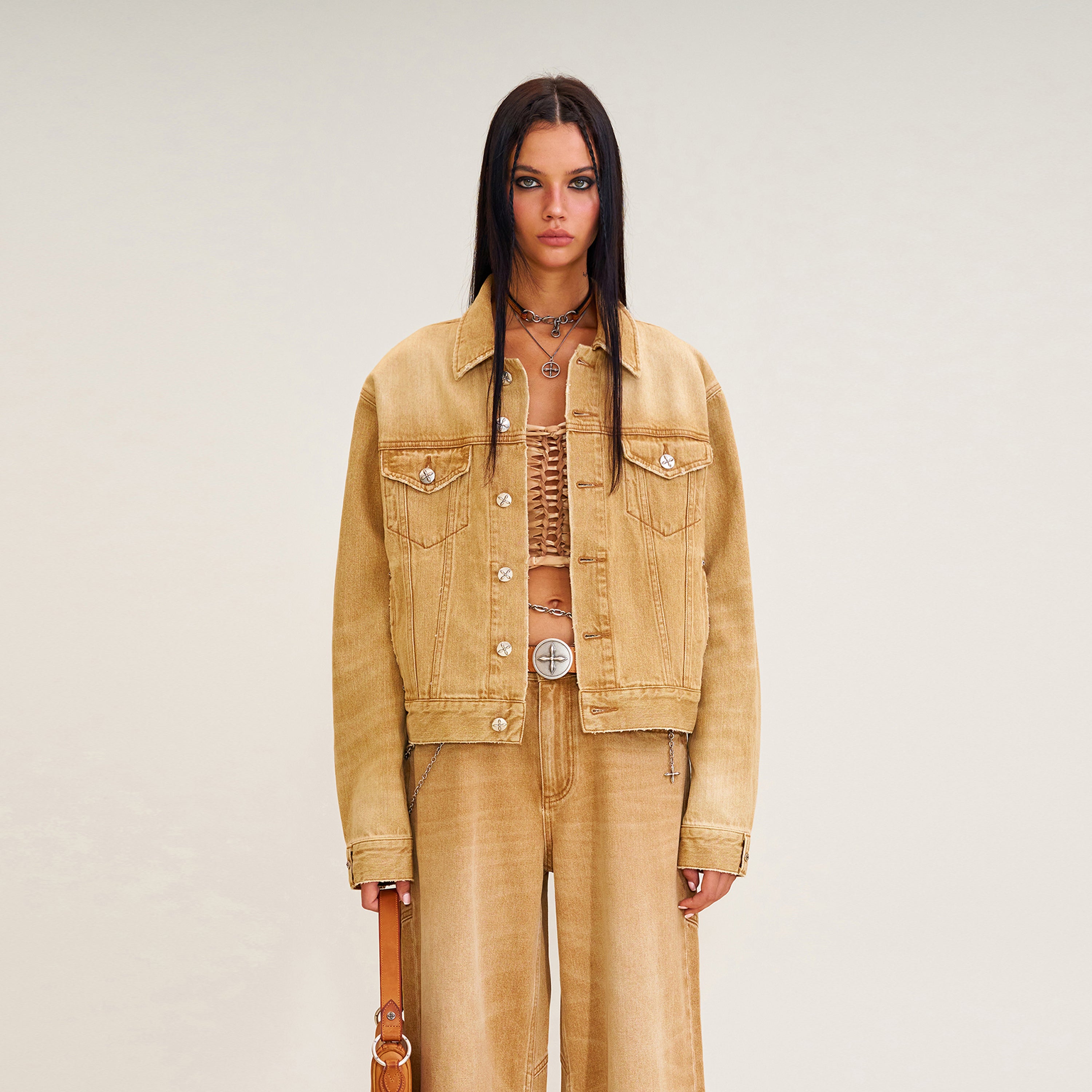十字架の像 荒野の花火 デニムジャケット プレーリーブラウン