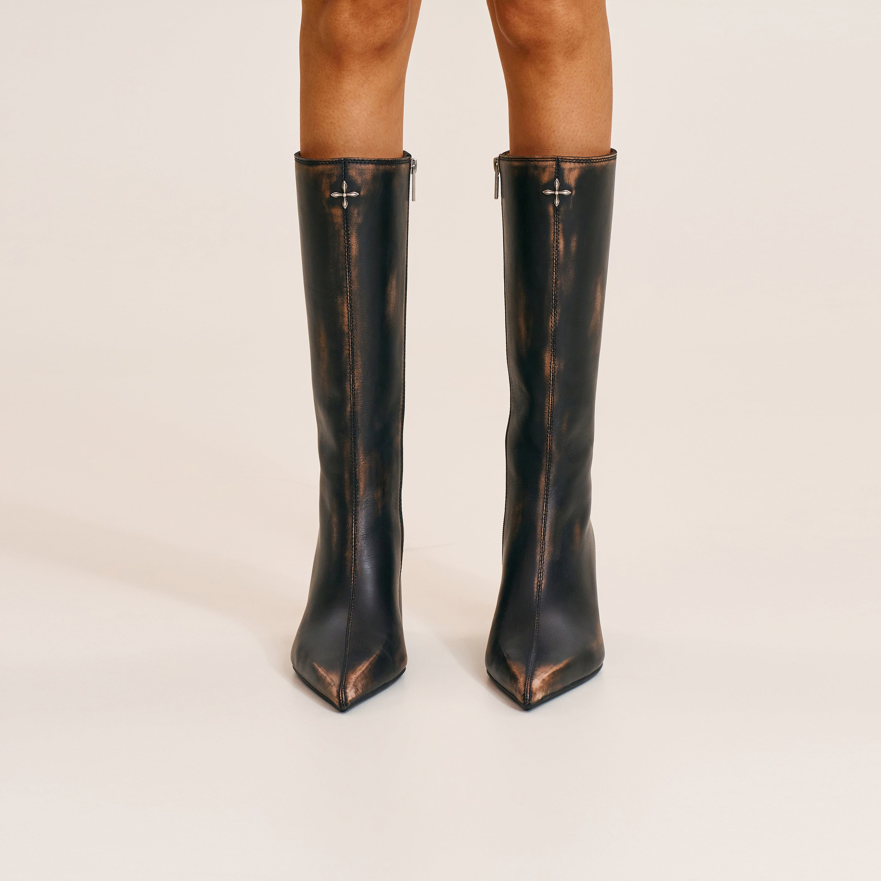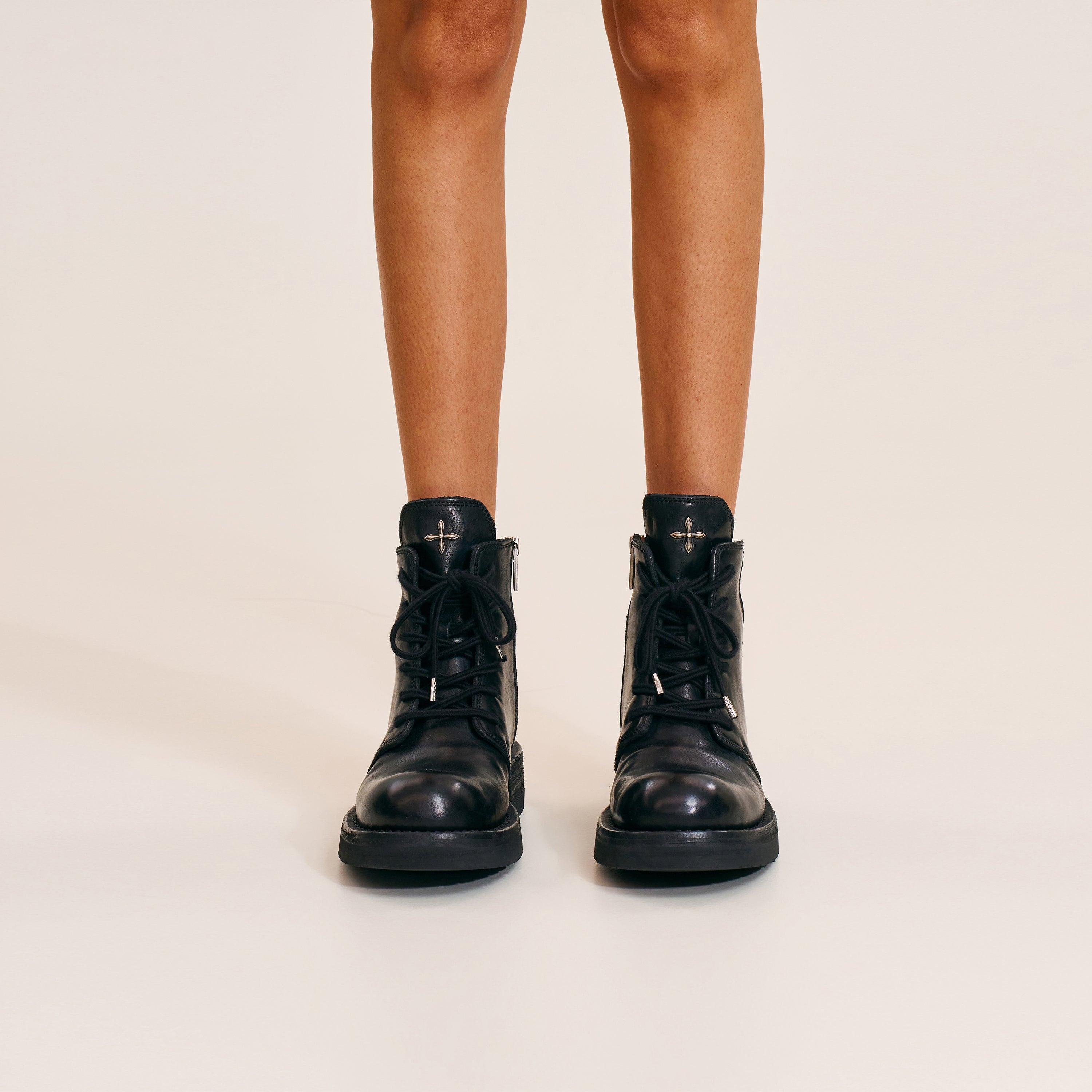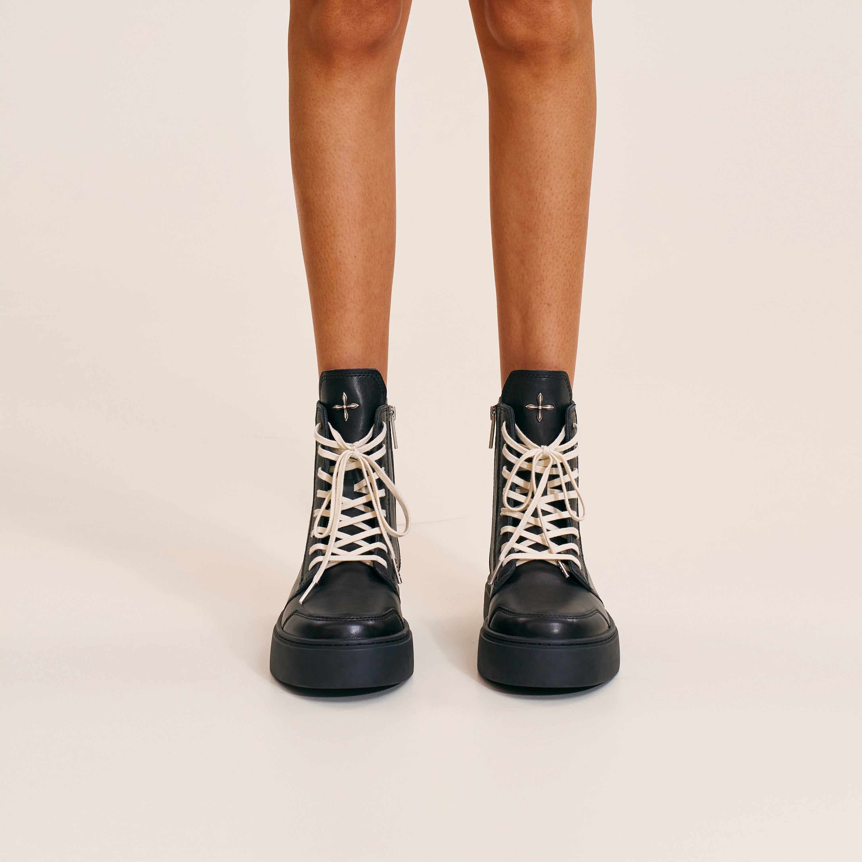チャージレザーハイトップスニーカー ウィルダネスブラック