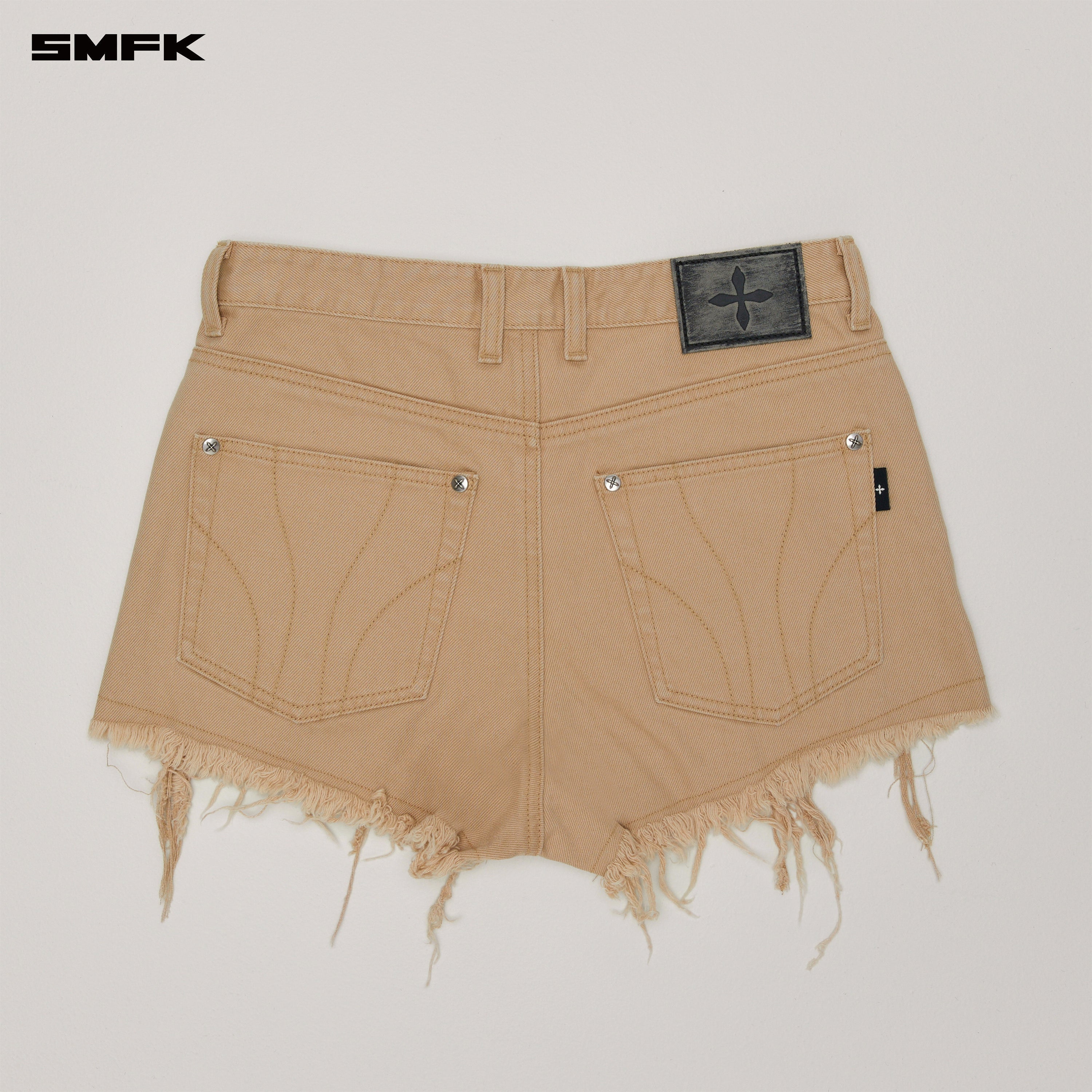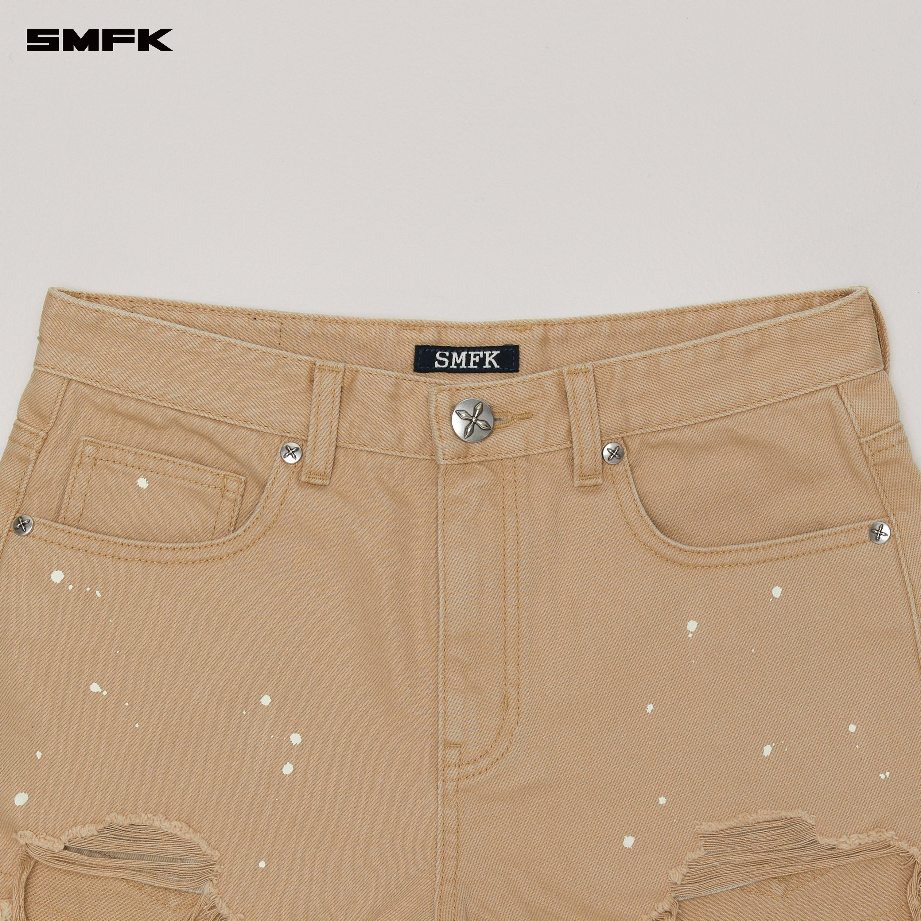 - Design: The SMFK COMPASS Classic Collection embodies the timeless beauty of cotton-based fabrics, showcasing the material’s inherent appeal through the brand’s signature black-and-white and earth-tone solid colors, as well as wild camouflage and animal-print patterns, highlighting the artistry of modern printing techniques. SMFK ICON's first mid-rise denim shorts, remains a staple to this day. Featuring a regular inseam, the hem is reinforced with anti-tear stitching for durability. The splatter effects are applied by hand for a unique, artistic touch.