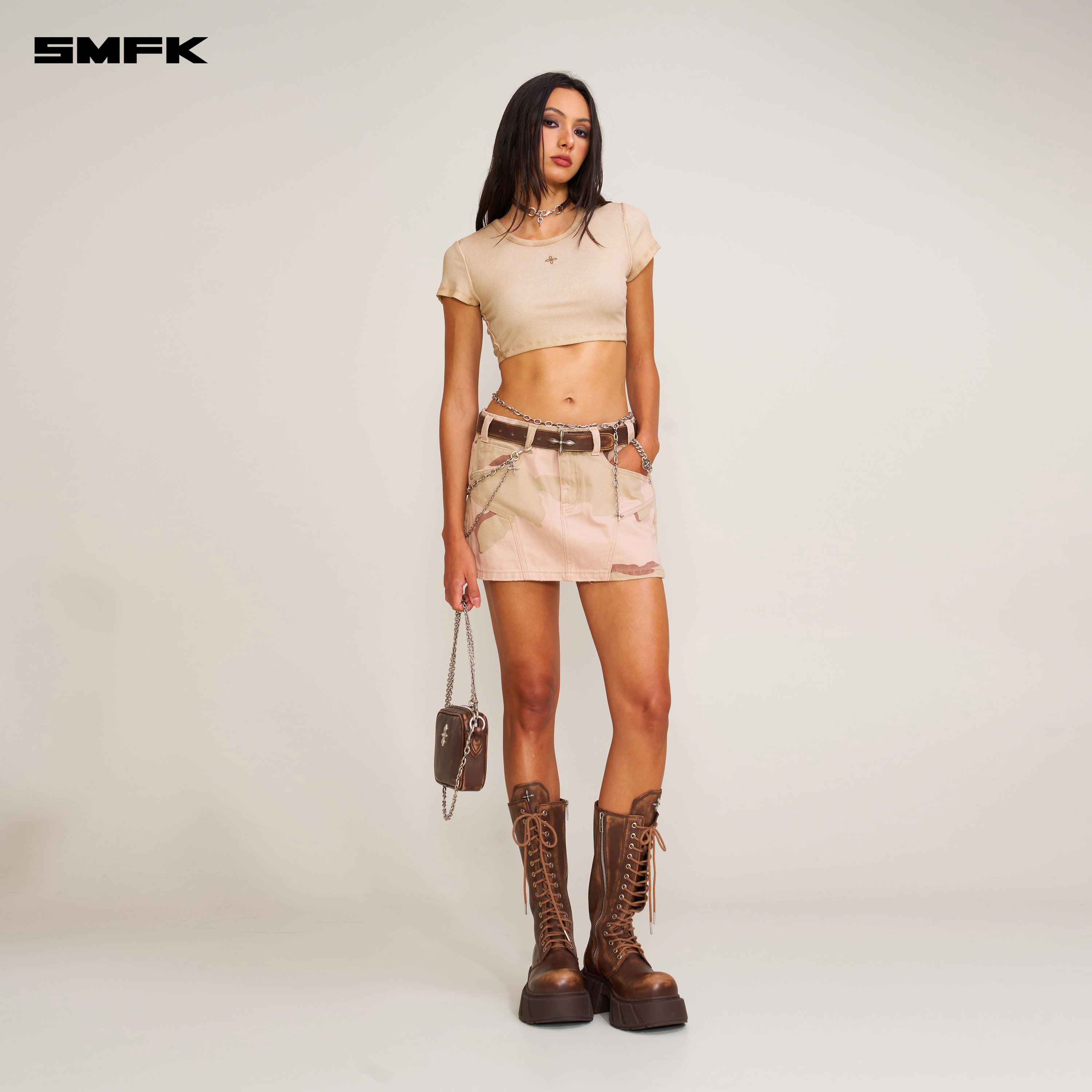 - Design: The SMFK COMPASS Classic Collection embodies the timeless beauty of cotton-based fabrics, showcasing the material’s inherent appeal through the brand’s signature black-and-white and earth-tone solid colors, as well as wild camouflage and animal-print patterns, highlighting the artistry of modern printing techniques. SMFK ICON Classic Denim Skirt, Mid-low waist.